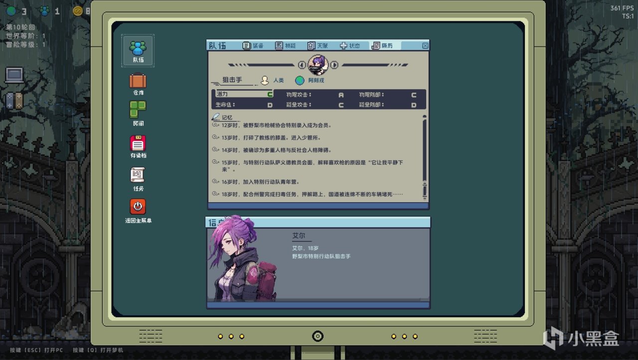 你扮演的是一個輪迴小隊的隊長,這裏有一些隨機角色可選,我們稱之爲永劫者。你可以查看一下他們的裝備、技能、天賦以及履歷。