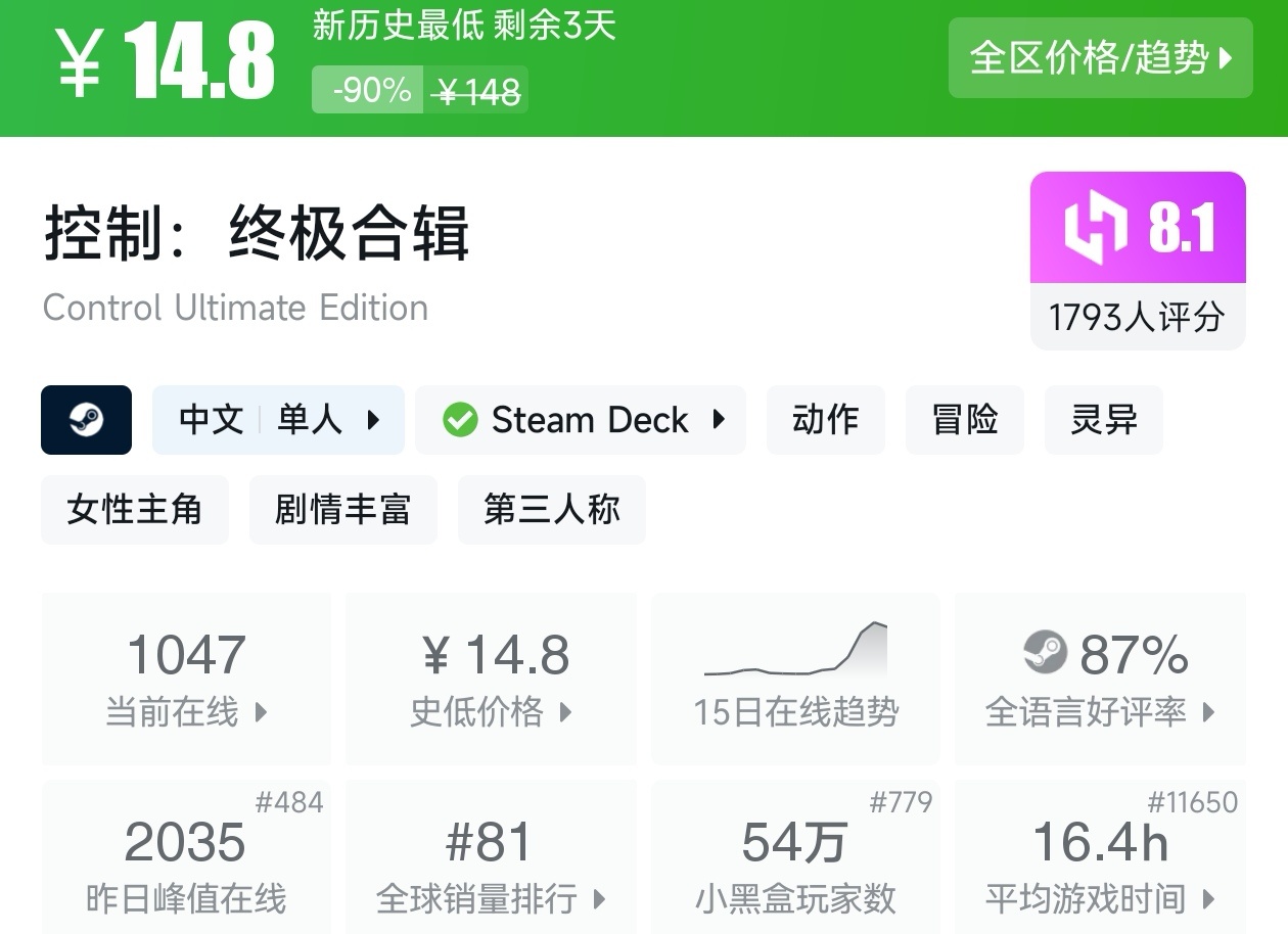 以上就是这期的折扣汇总,几乎涵盖了近期所有的一折游戏,足足用了我一个小时。