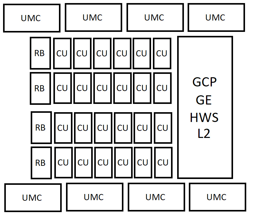在每个着色器引擎上,都有自己的渲染支持(RB)单元,这些单元连接至中间的SoC块,其中包含了图形命令处理器、图形引擎、硬件和L2缓存。还有 16 个统一显存控制器,每个控制器 32 Bit,显存位宽达到 512 Bit。如果 AMD 坚持使用当前的 IFC 配置,顶部芯片可以包含高达 128 MB 的 Infinity Cache。