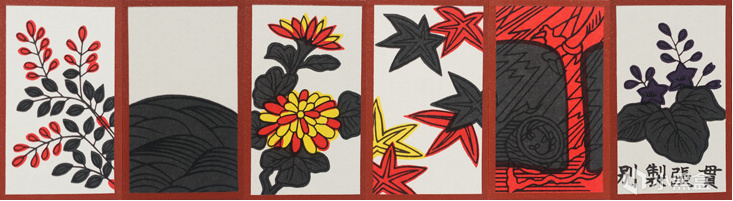 总计10张,牌面为写有文字或纯色的长条诗笺,俗称“短册”。