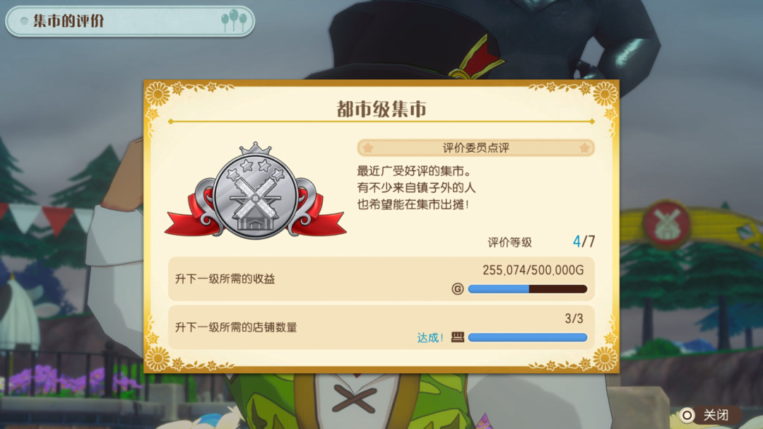 本作則在繼承這一框架的基礎上做出了全方位調整。現在的集市擁有從“村級”到“世界級”共七個評價等級,需要集市內的商店數量和玩家累積銷售額達到一定數量才能得到提升。評價等級會影響到部分登場角色、功能甚至新區域等遊戲內容的解鎖,成爲了本作重要的主線目標。