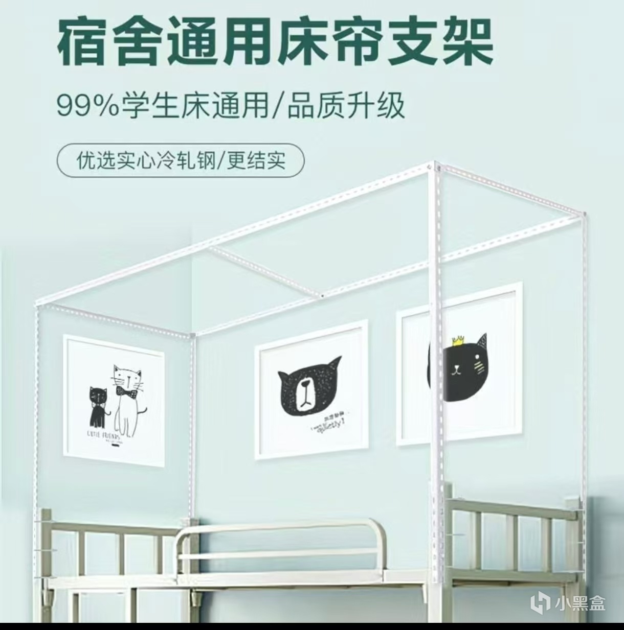 2.DIY自由度高:上方的横梁可以让你自由发挥,比如挂个小风扇、灯。而且三角钢有很多孔,可以挂衣服等。蚊帐和遮光帘都可以按需加装,基本兼容所有宿舍床的型号。