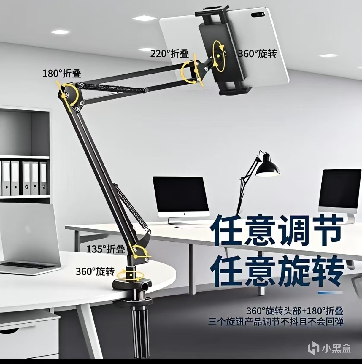 这个支架夹在床上卓子上面,实测特别稳,夹着平板,躺着就可以看片(温馨提示:躺着看平板伤眼睛),解放双手让双手做该做的事。
