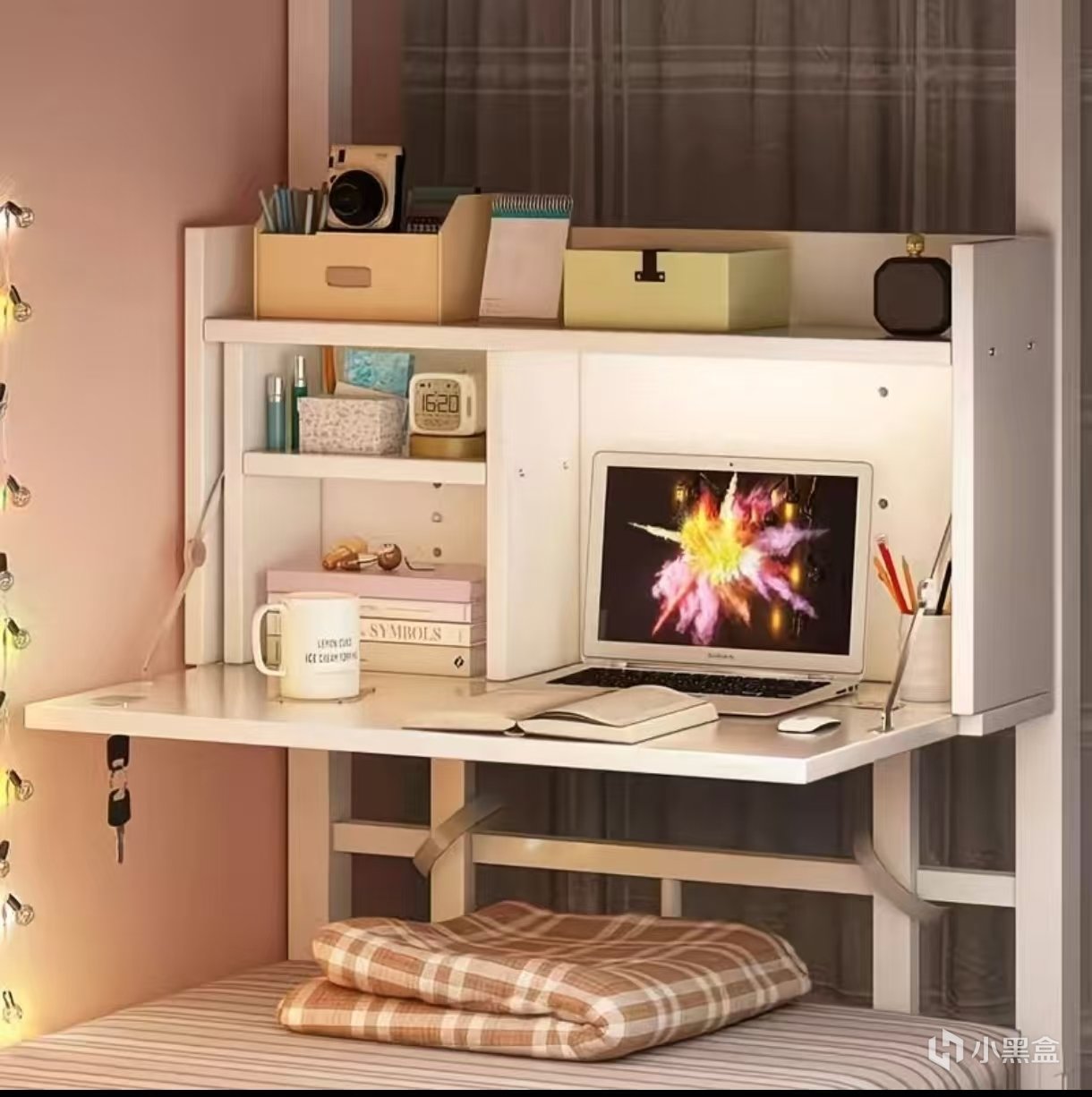 当然,它最主要的用途还是放置插线板。插线板直接扔床上真的有很大的安全隐患,放在桌上就安全多了。记得买那种带理线孔的款式,方便走线。平时放些纸巾、平板、小垃圾桶之类的杂物也非常方便。