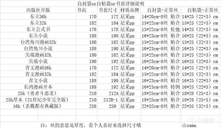 PVC(聚氯乙烯)材质书套重复利用率高,由于其塑料特性极为耐造,可清晰且耐久度高,但其不宜存放在温差大的地区,(热胀冷缩性)且带有塑料异味.(油墨较重的新书PVC材质会出油,使用后期可能会黏手,用酒精擦拭可以提升其寿命.) 雾面书套一般只有常规尺寸,最贵也最高级.其透明度较低,但手感上乘. 哈哈磨砂同样手感极佳,相较于尼采品牌其书套较脆易破,但不出油. 书套为消耗品,软掉,起波浪等问题很常见.书友可根据需求自行购买更换.