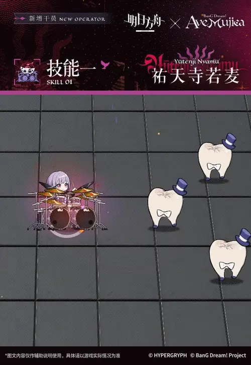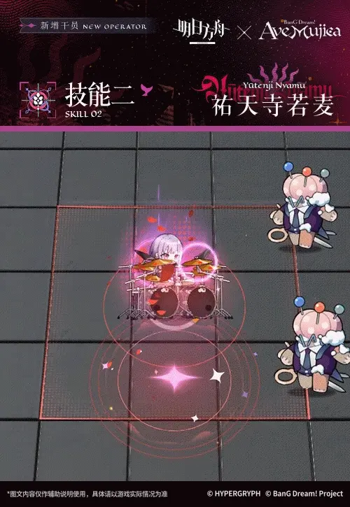 技能開啓後,祐天寺若麥攻擊範圍擴大,攻擊變爲特殊的八連擊,其中第一、五次攻擊的攻擊力提升;其餘攻擊的攻擊力降低。隨機攻擊範圍內的目標。