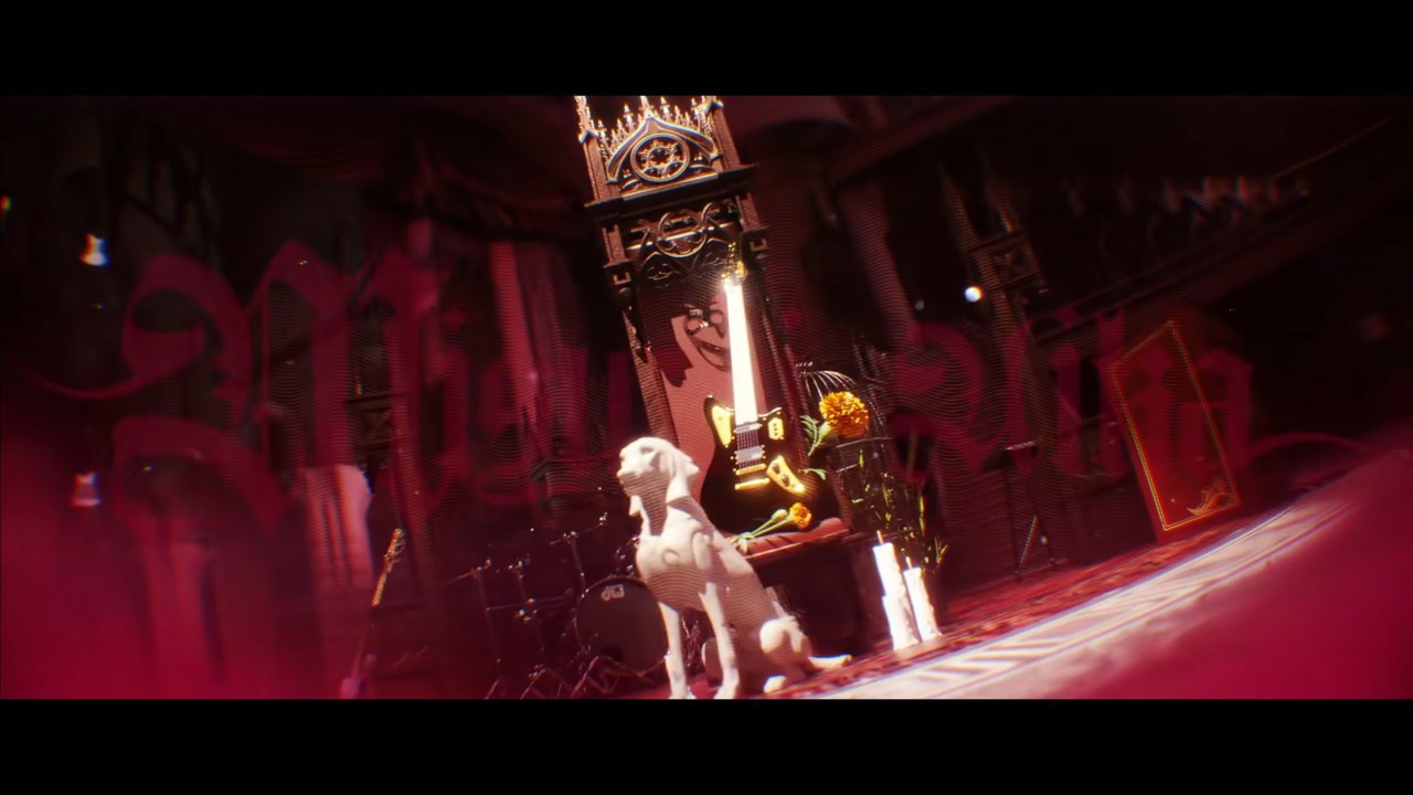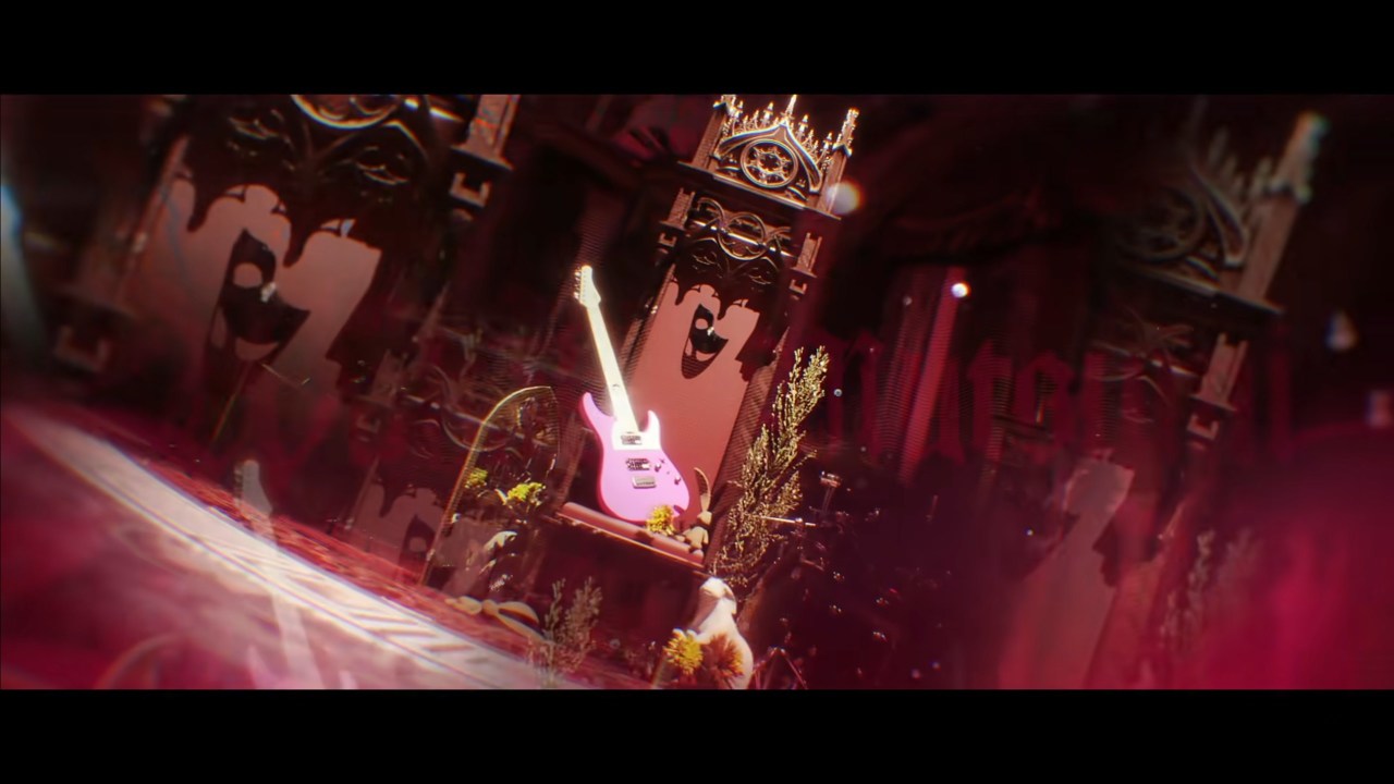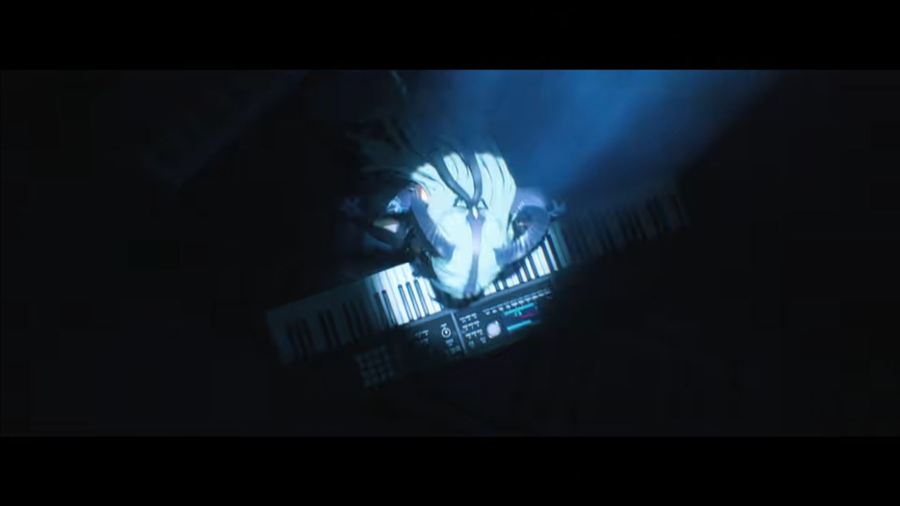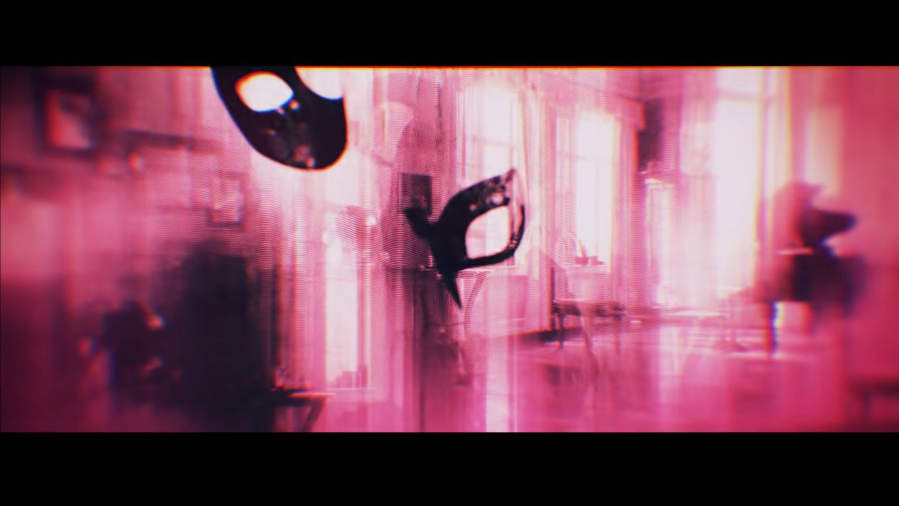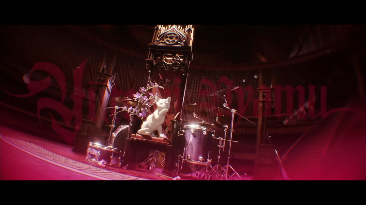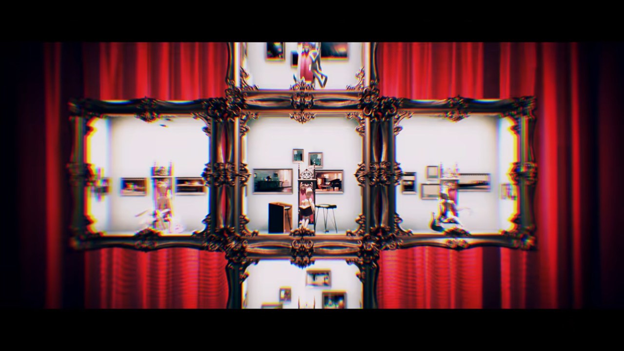 PV的高潮來臨,面具在座位上升起,鏡頭從橫向向旋轉變成螺旋上升,豐川祥子正式亮相