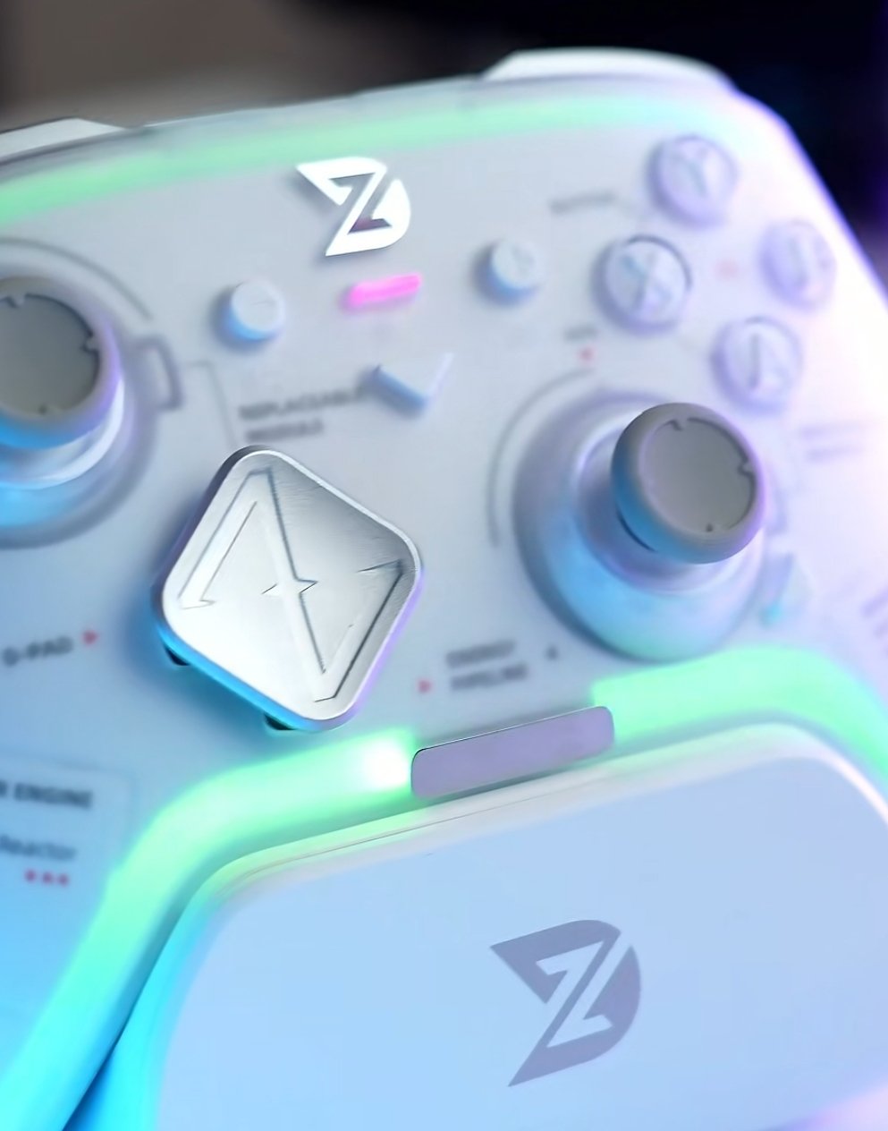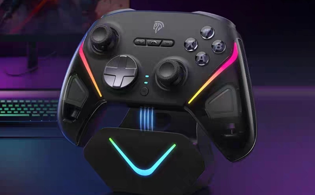 國補後169的價格,卻不輸中高端手柄的配置。黑色賽博風格的外觀搭配RGB燈效,科技感十足,有啓停充電底座,也是TMR磁變阻搖桿,七層八項十字鍵解決串鍵問題,也是雙切扳機設計,全機械按鍵的手感清脆回彈快,再加上2顆可編程背鍵。