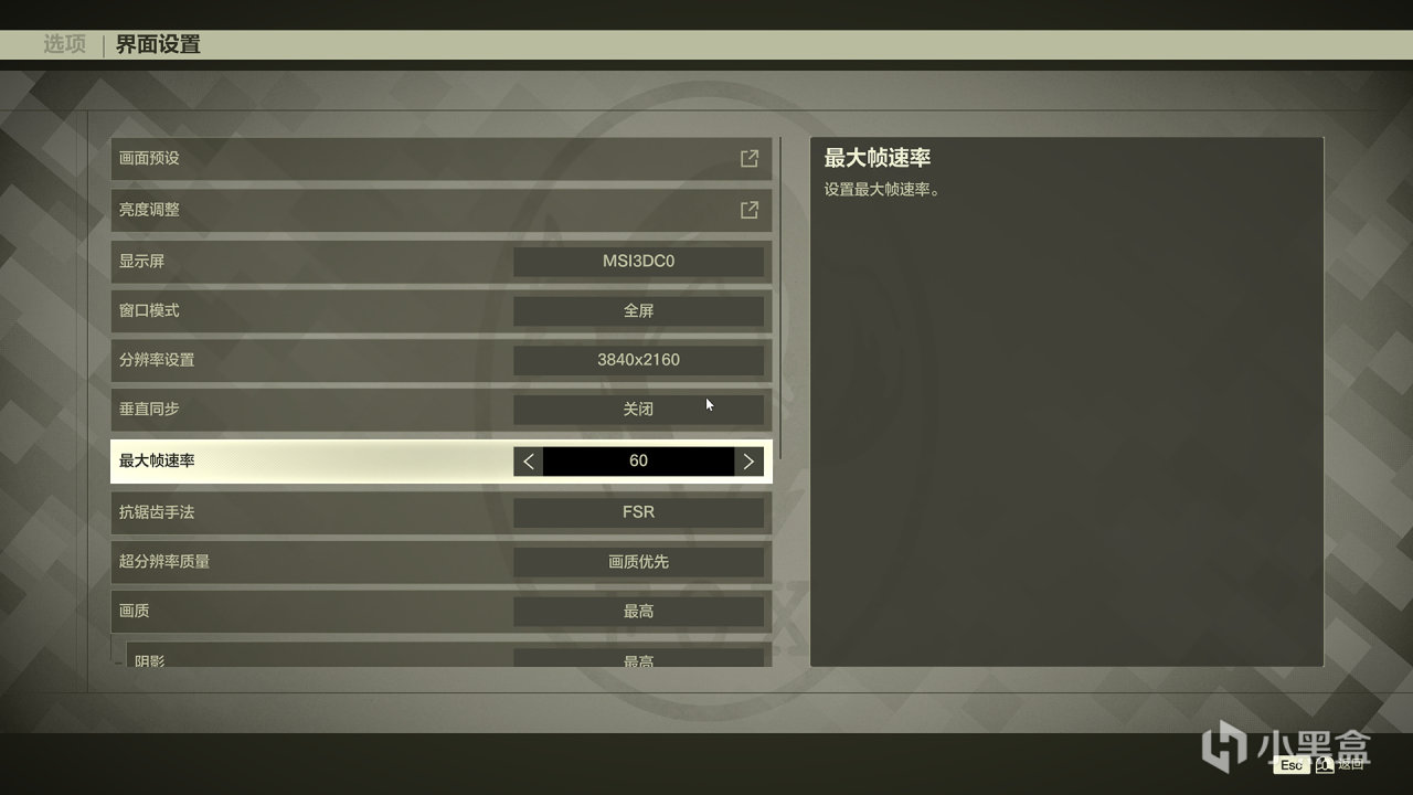 《合金裝備 Δ:食蛇者》菜單UI設計是挺簡潔的,就是感覺選項右側區域有些浪費了,加入顯存或者性能參考標識顯然更友好。遊戲還是遵循系列傳統特性——鎖30和60幀,現階段Nexus Mods網站也有作者放出解鎖幀數補丁,不過建議大家還是慎用吧,可能會影響遊戲內的物理邏輯,比如慢動作。