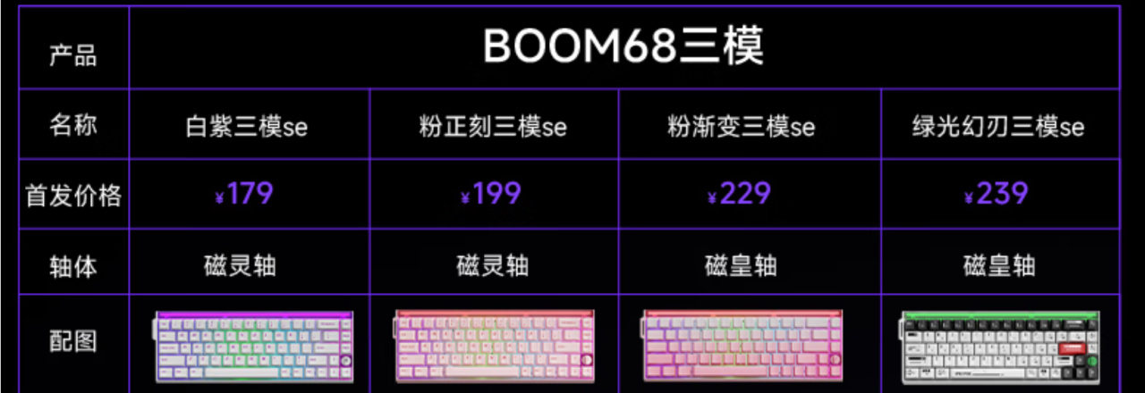 我奔着Boom68去主要還是因爲這個三模大電池和旋鈕的特點,在其他品牌的磁軸鍵盤上很難見到。