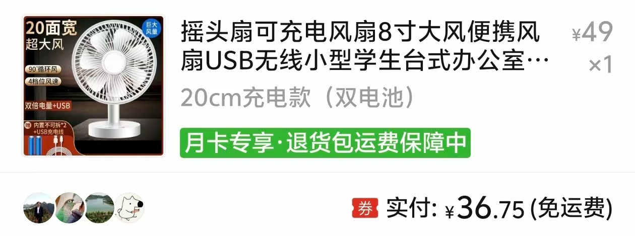 在拼多多的加持下,用42塊錢拿下了酷態科的CP暴力小風扇,不自帶電池,需要外接充電寶使用,有點抽象,但作爲充電寶愛好者,我手裏有不少小型充電寶,搭配起來還是挺便攜的。