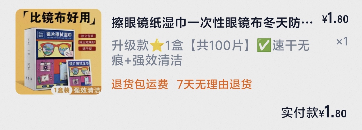 我之前圖便宜,買了3.8塊錢100張的眼鏡溼巾。只能說能用,畢竟這個價格也沒啥好要求。不過最大的問題是它很容易幹,我纔買了3個月,就有部分溼巾幹掉了。