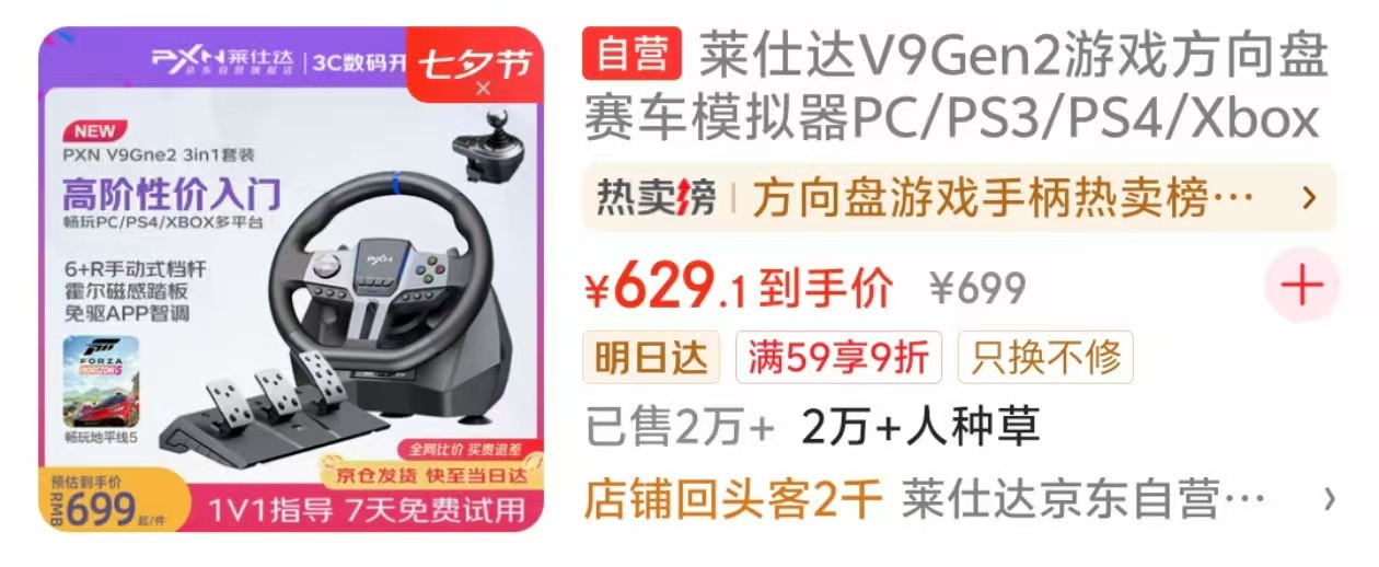 我之所以選擇萊仕達,主要是因爲這個品牌在方向盤領域做得比較久,而且延續了之前做手柄時的高性價比路線。V10 Pro算是他們的旗艦產品了,價格比我當時還便宜一些,來到1199元。