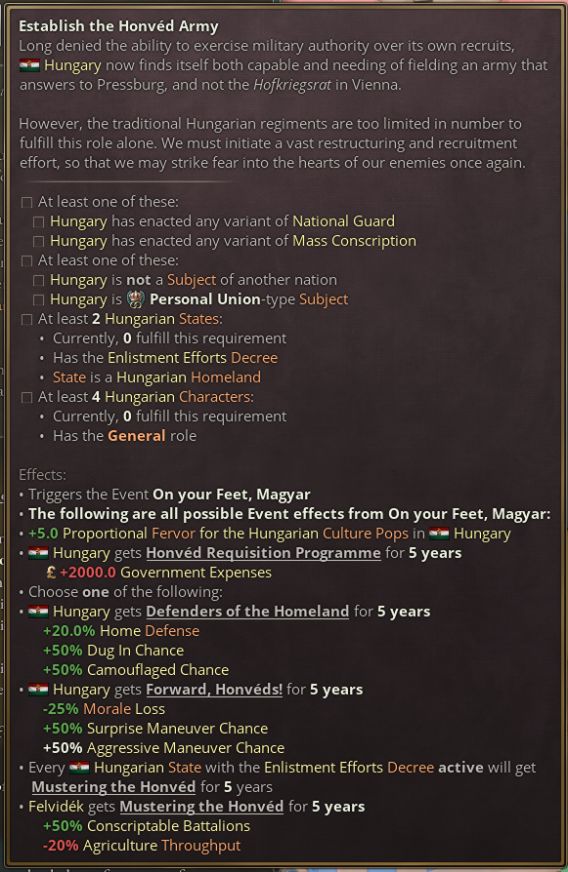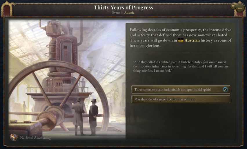 National Awakening包含许多叙事内容。我们无法在确保质量的情况下将全部内容压缩至一期开发日志,那种日志对阅读他们的读者而言太残忍了。考虑到我不是残忍的人[你太城市化了.jpg],我们决定将叙事内容分两期介绍。首期主要关注奥地利匈牙利与相对较为通用的内容,而第二期则关注巴尔干国家——黑山、塞尔维亚、保加利亚、希腊以及我们为奥斯曼帝国添加的支持内容。