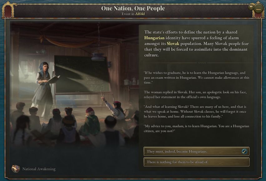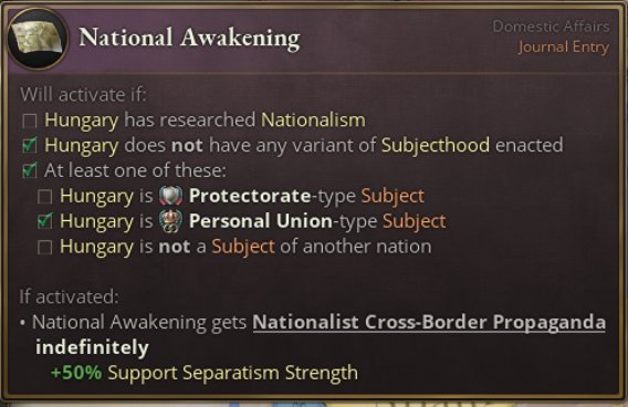 该日志将在启动时创建一个民族觉醒地图标记,并会带来一系列事件,主要聚焦于建立民族认同。