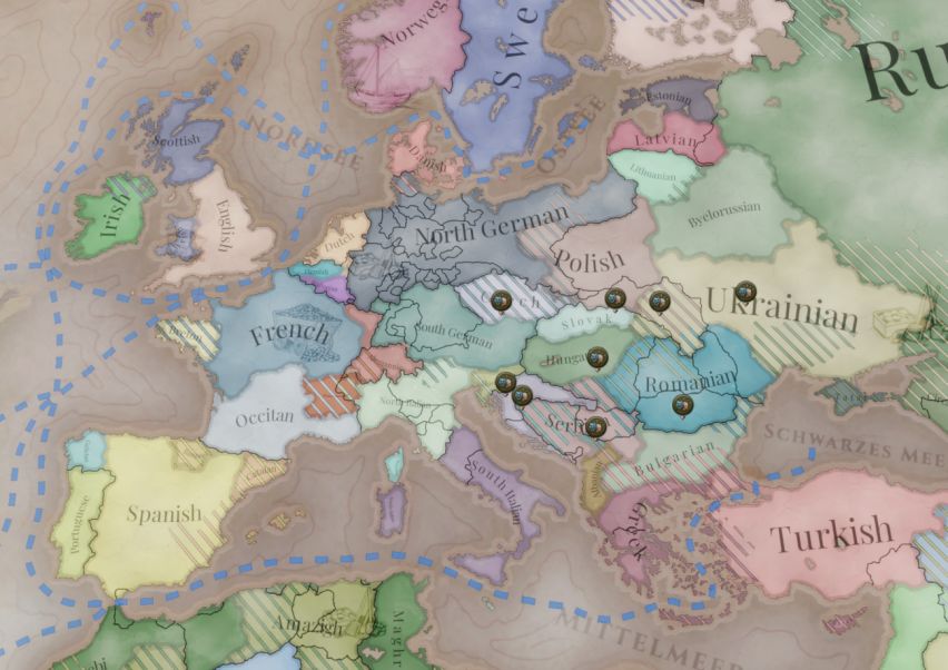 1.10版本让游戏地图有了新作用。民族觉醒标记能突出显示民族觉醒进程的震中。此震中的民族文学传统达到了临界规模,并因此能够促进民族意识迅速增强。举例来说,历史上,克罗地亚民族复兴就是民族觉醒过程中的一个核心,克罗地亚民族主义活动家们利用新创的克罗地亚书面语出版了大量引人注目的本土读物。