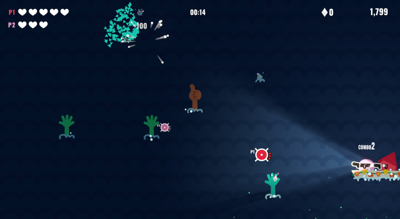 那游戏是完全依赖左键操作的游戏,所以船的移动,也是依靠枪械的后坐力使船向后倒退,从而实现位移,碰到四周边缘时会产生轻微反弹。