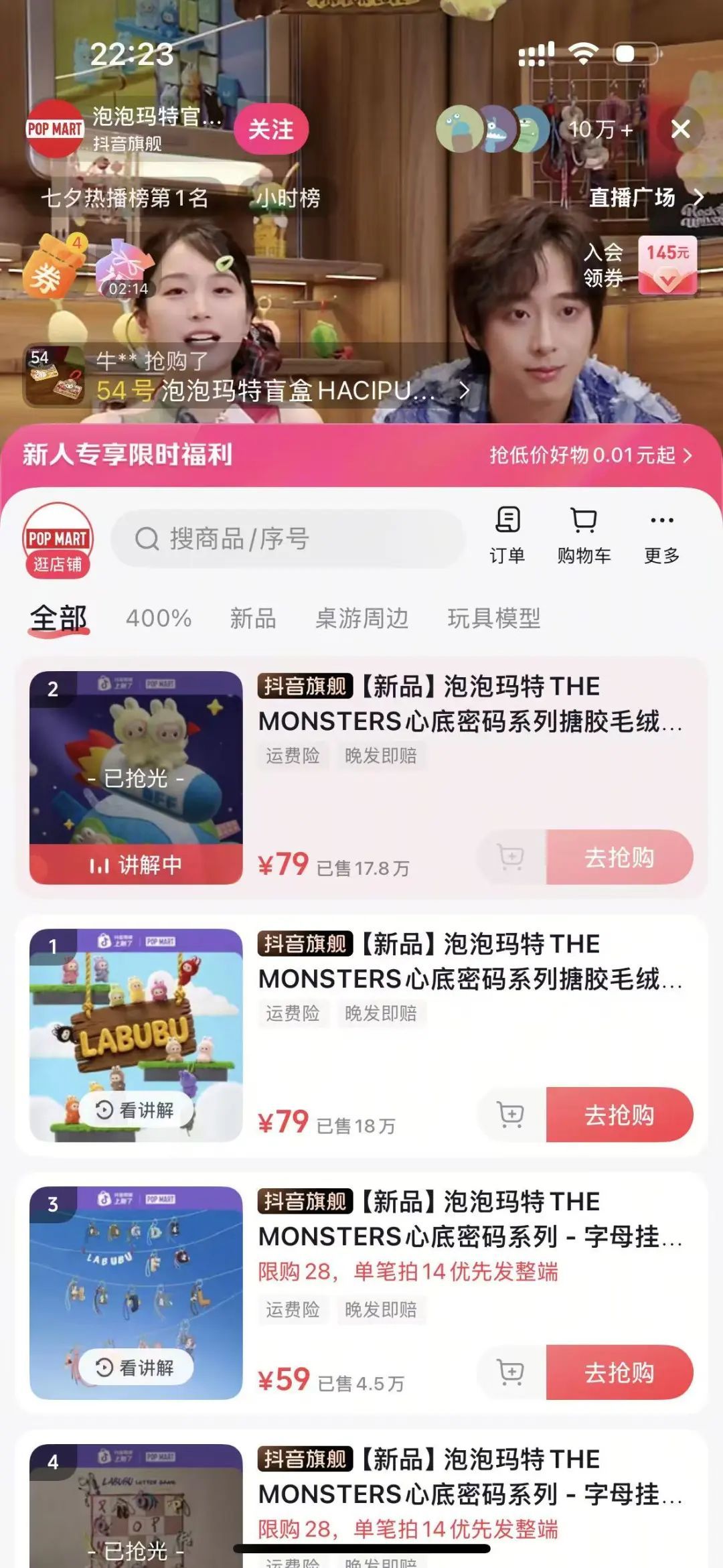 8月28日晚上22点,泡泡玛特创始人王宁亲自带货的miniLABUBU,终于正式发售了。