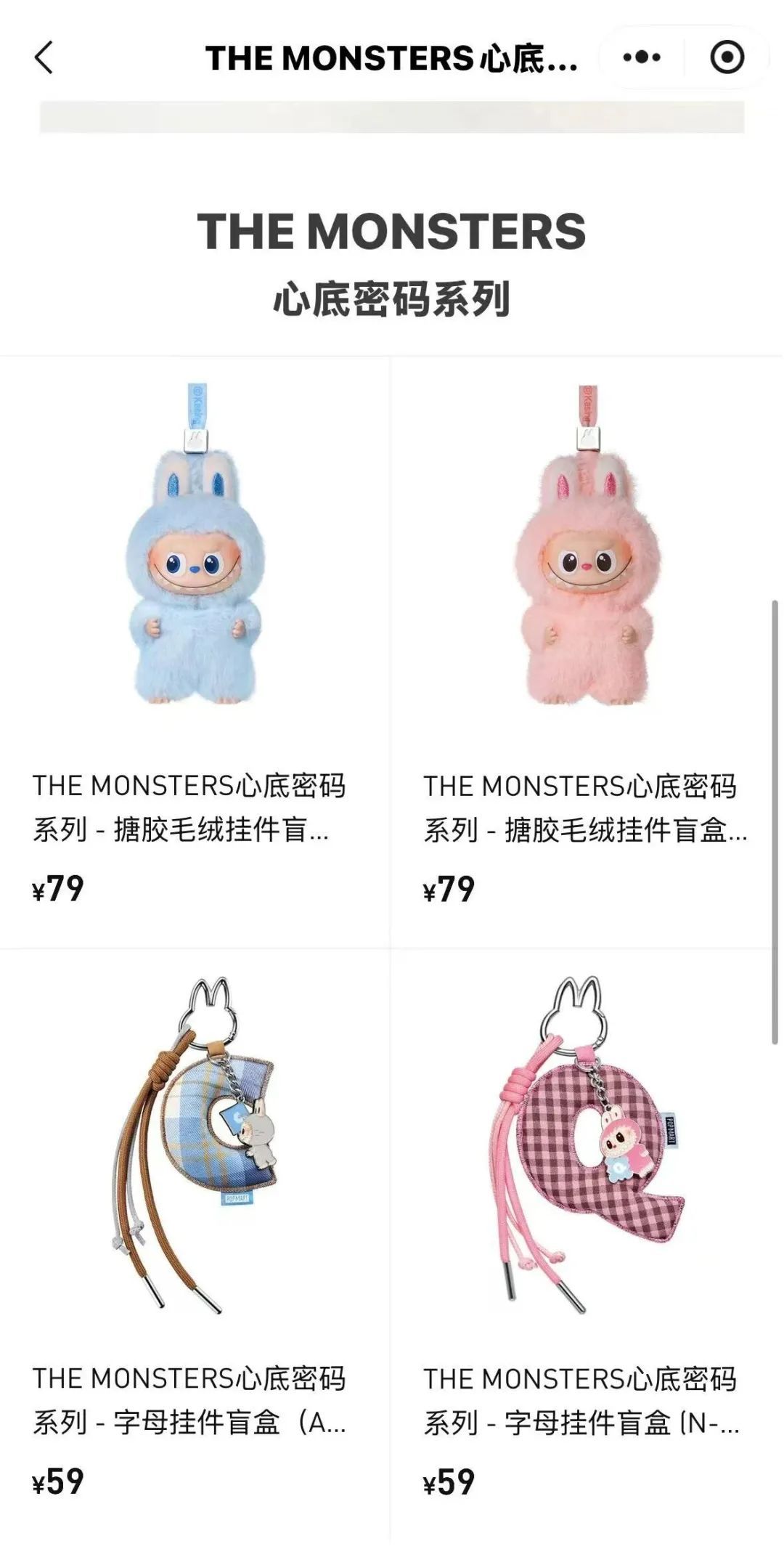 对比来看,配套推出的字母挂件盲盒,挂件上小小的LABUBU配饰存在感并不强,