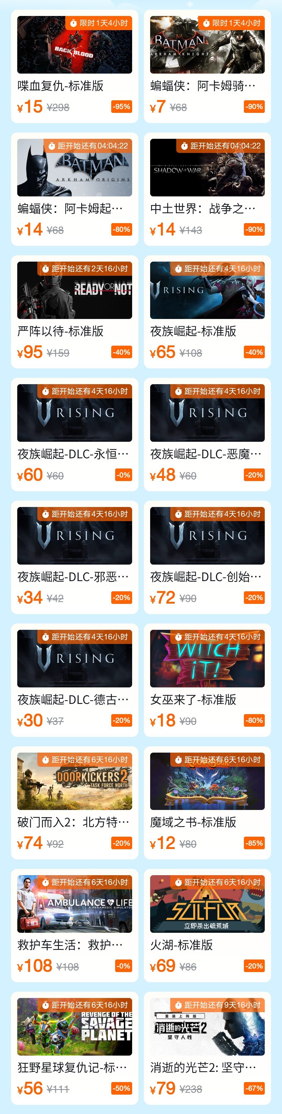 闪促活动老演员了,通常会有多款游戏迎来好价。