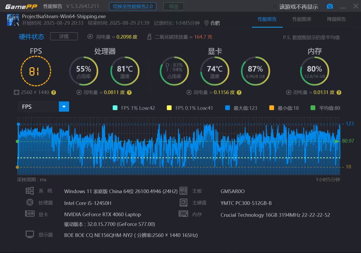 一开始教程里的体验非常流畅,以至于我对网上说的优化差,产生了一定的质疑。结果一进游戏流程我的质疑就被彻底打破。游戏非常的卡,给我的模式设置是一堆史诗(比高玩高一级),我全改成高之后依然是一样的卡,尤其是boss战时掉帧非常严重,非常影响体验,扣大分。这里给一张帧率图以供参考。