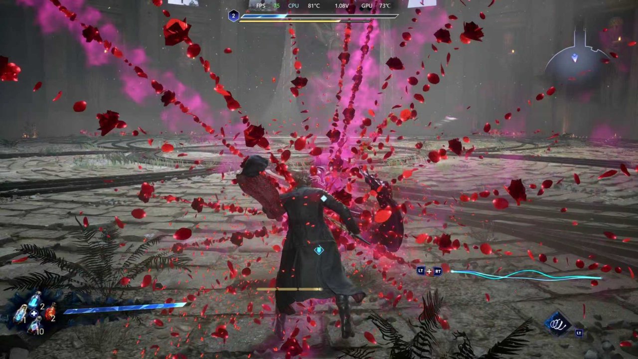但是有个严重的问题还是要提一下,我认为在demo版本里,教程的动作体验非常好,以至于我认为跟鬼泣五都有的一拼了。但实际流程中,虽然多给了一把武器,但是很多教程中的招数都没有了,招数数量大幅缩水,导致战斗有时候会变得比较卡手。这一点上虽然鬼泣五的招数也是逐步解锁的,但从未有过如此微妙的“卡手感”。当然这一点只是我个人的体验,说出来仅供参考。