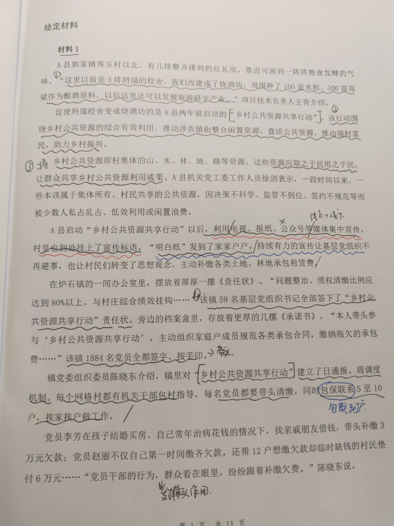 请看图中序号,我会把所有的做法都标出来,最后进行整合。看看有没有重复,或者有没有可以合并的。当然不合并也是可以的,多写几条也无所谓,申论是按点给分,写到了不管在哪条都是给分的。最后按照你的分条结合字数给出答案。