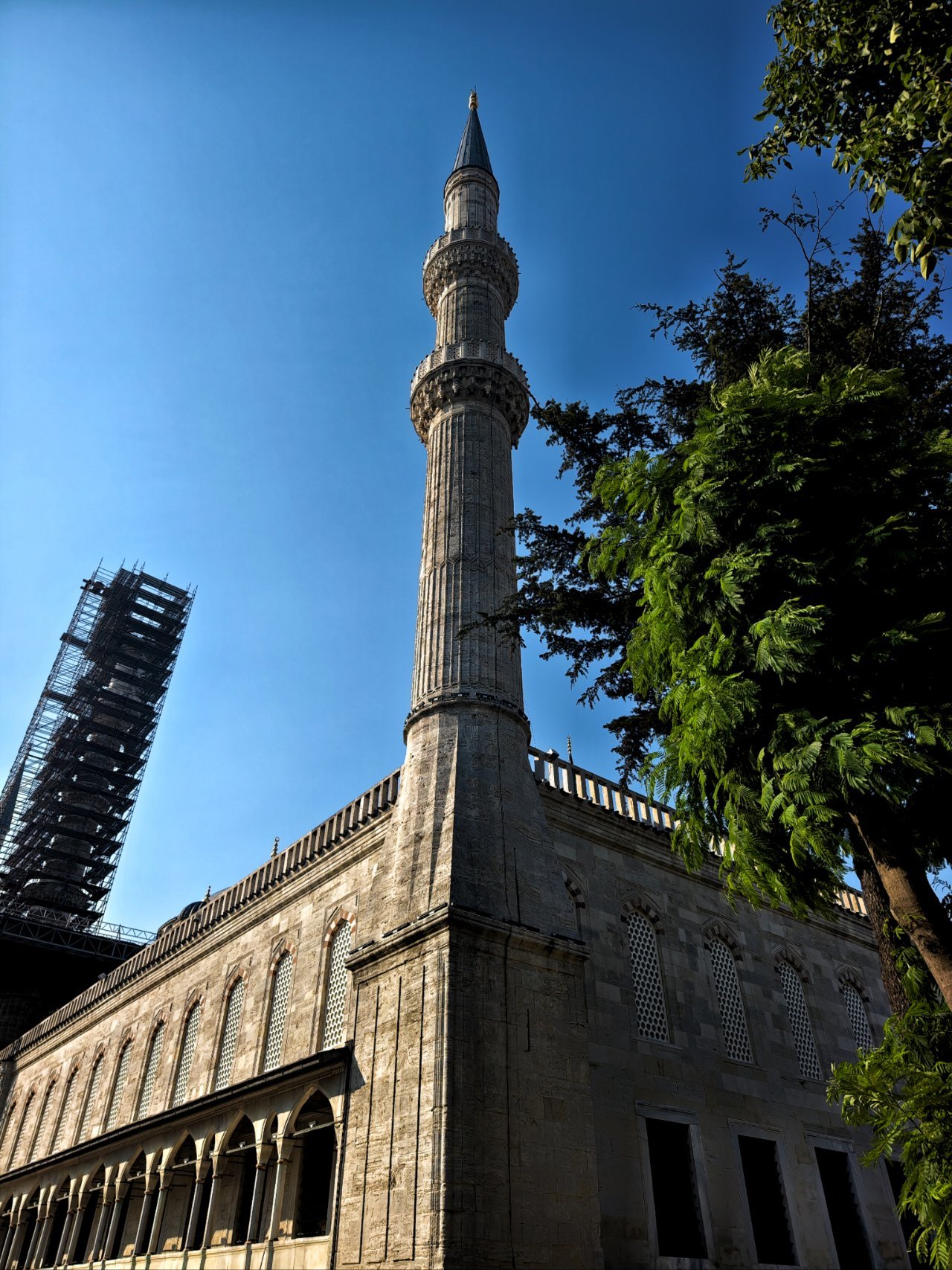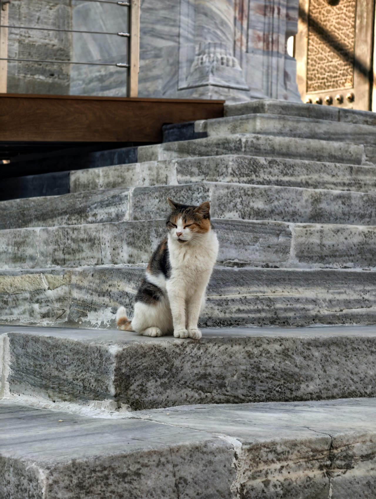 清真寺门口两只猫懒洋洋地趴在大理石台阶上,眯着眼睛打量来往的游人。毛色光亮,显然是常受喂养。无愧于猫城的称号