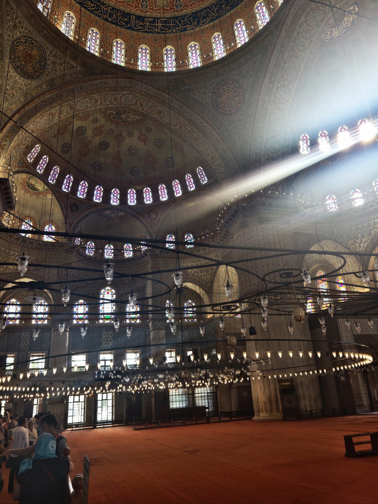 脱了鞋,踩在柔软的地毯上。阳光透过彩窗洒落,形成一道道斑斓的光柱。本地老外旅行团一阵阵赞叹声不绝于耳,但对于见过大场面的中国人来说,两个字