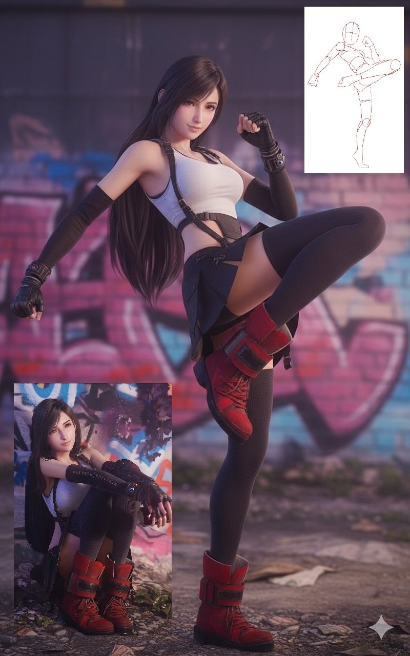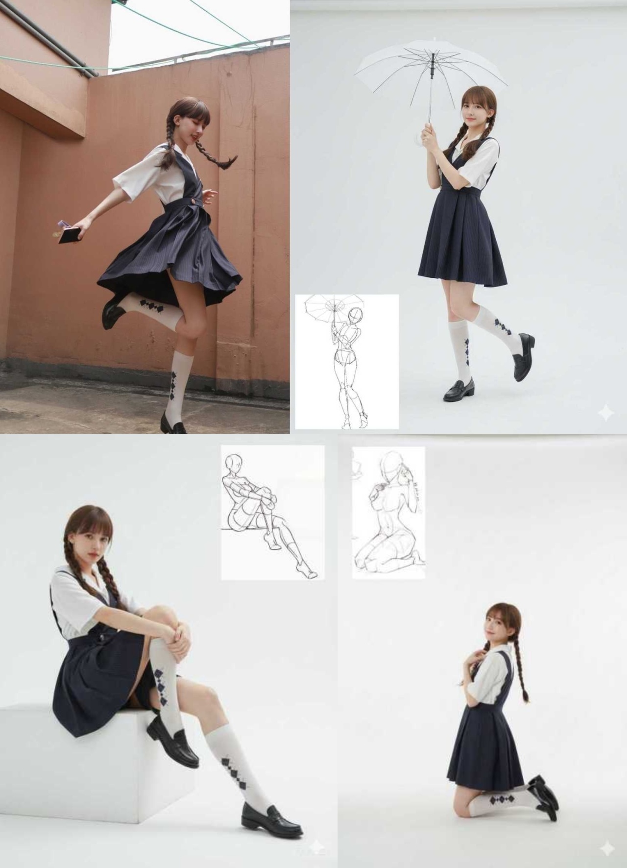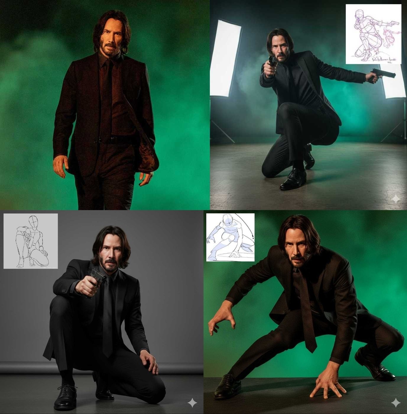 没找到合适姿态图的话,自己简单手绘火柴人也能有相应的效果,可以稍加额外的描述来弥补细节的缺失