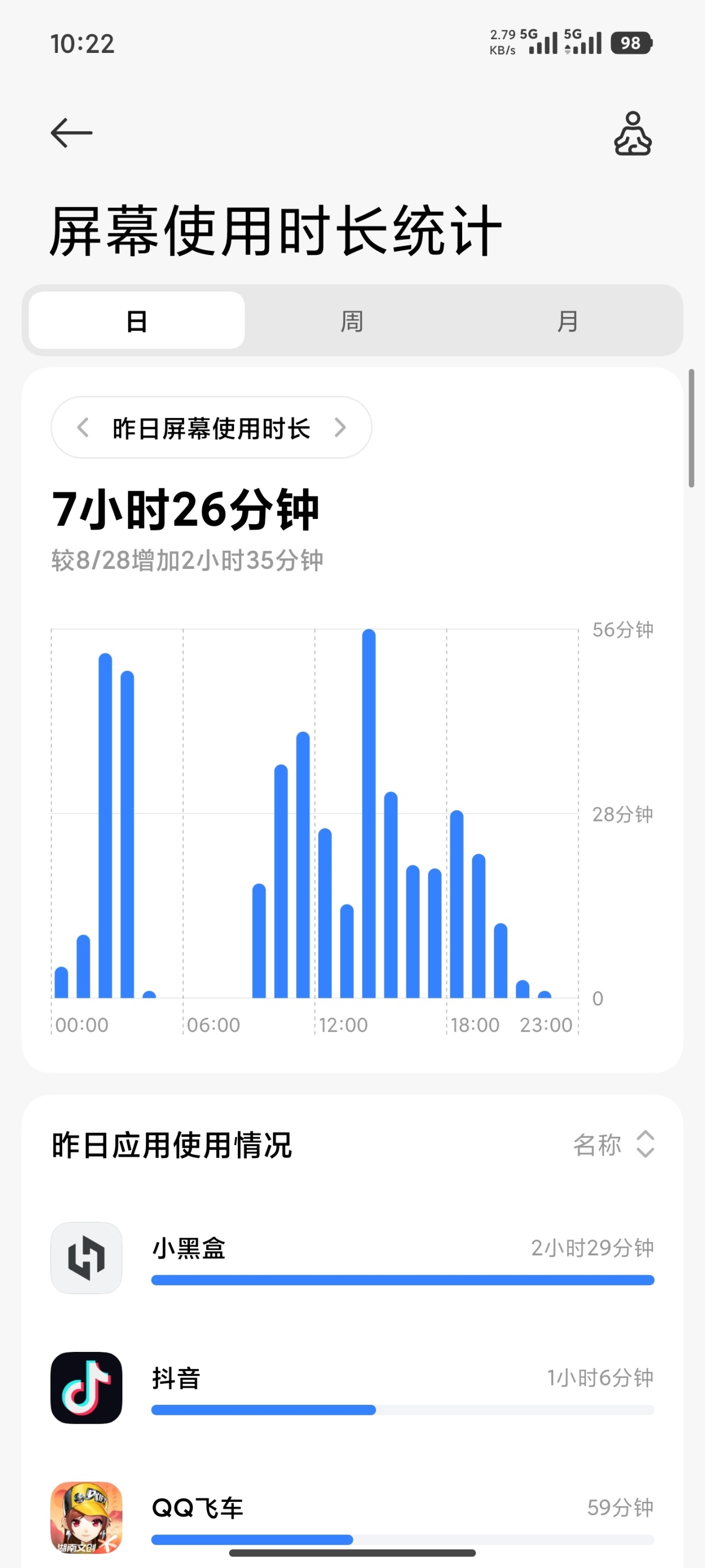 查看亮屏时长,自昨天下午2点充电后,统计总亮屏使用时长在5小时左右(见P5)