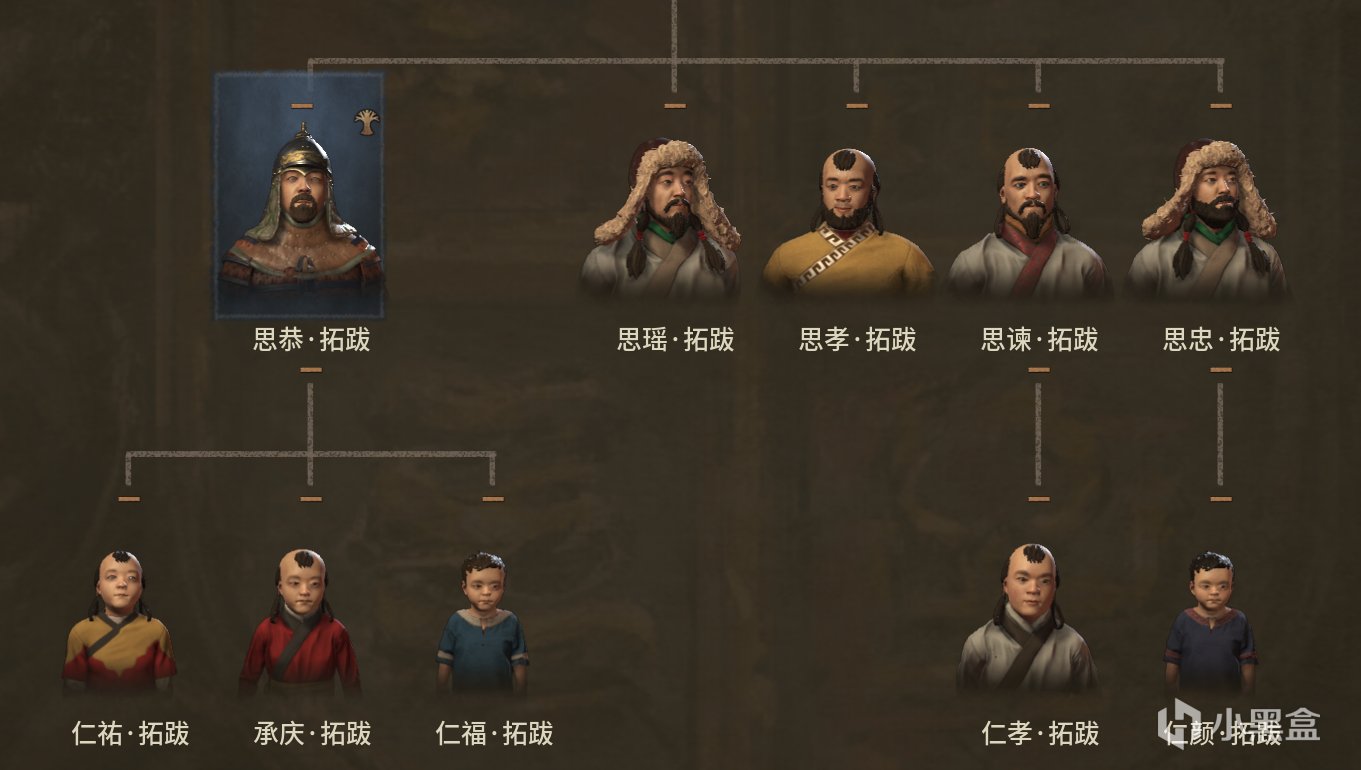 这个时间点的拓拔家族都没有领地,族长是拓跋思恭,固定为四星教育特质和狂热特质。