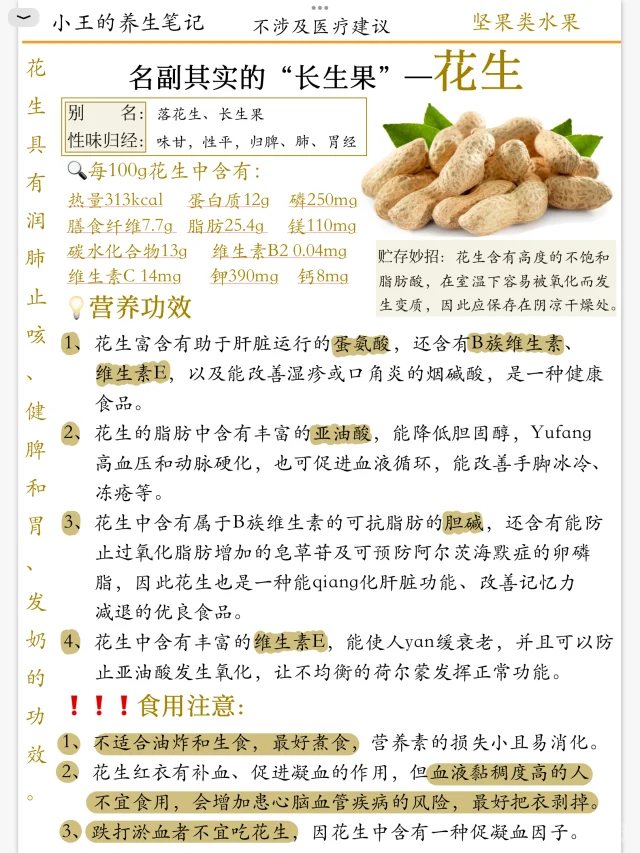 需要注意的是,花生热量和脂肪含量较高,过量食用可能导致热量超标,且部分人群对花生过敏,这类人群需严格避免食用;此外,花生中的嘌呤含量中等,痛风急性发作期人群应限制摄入。