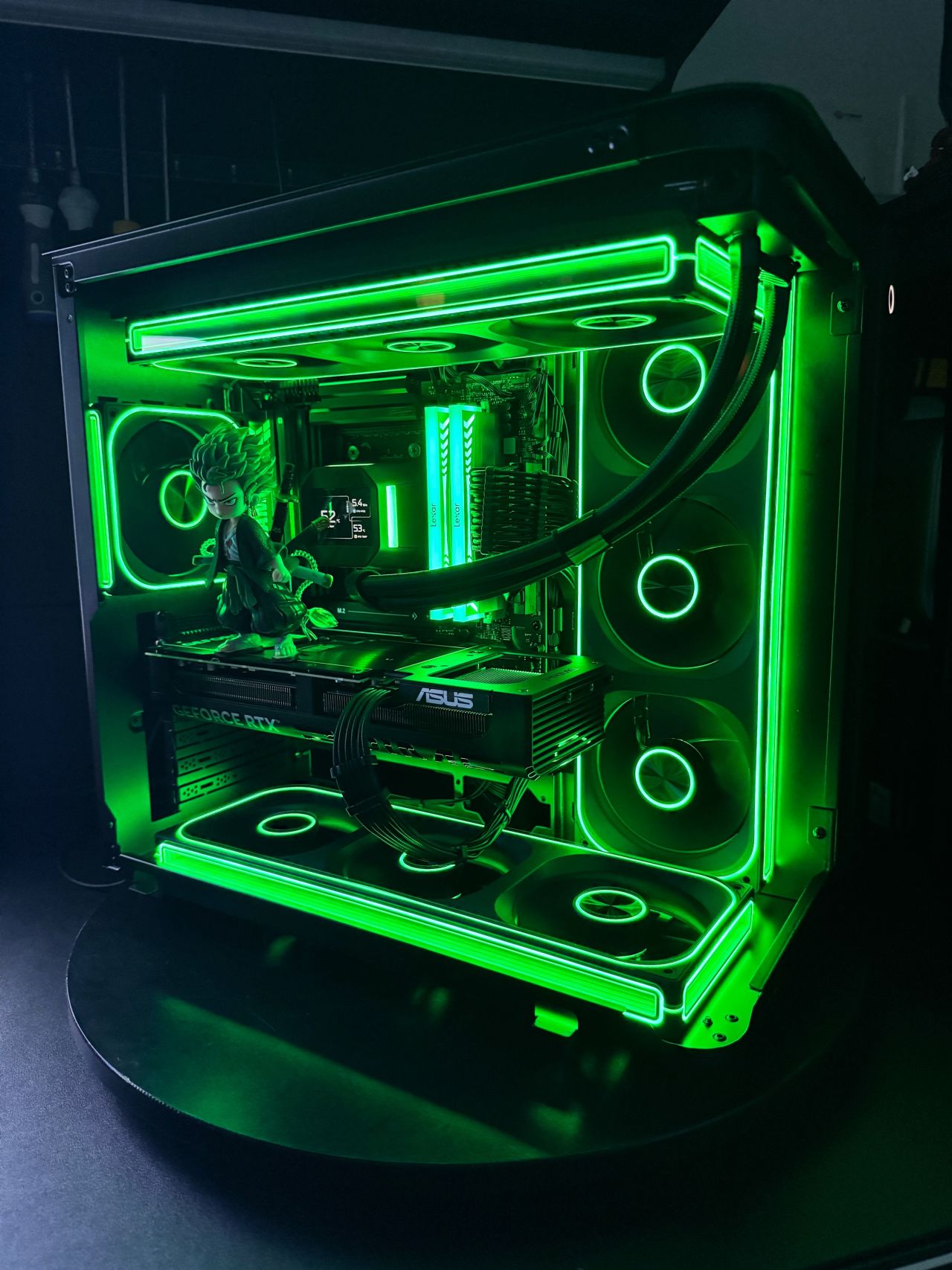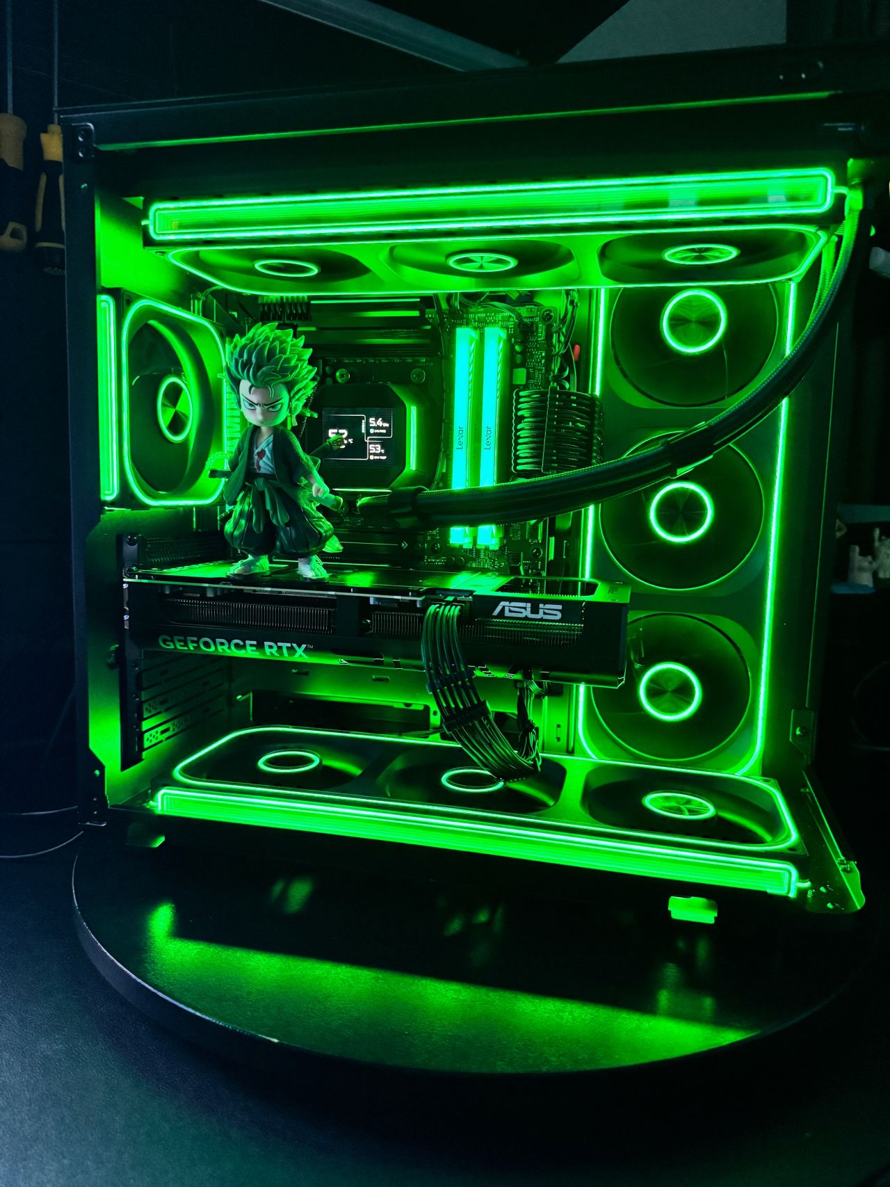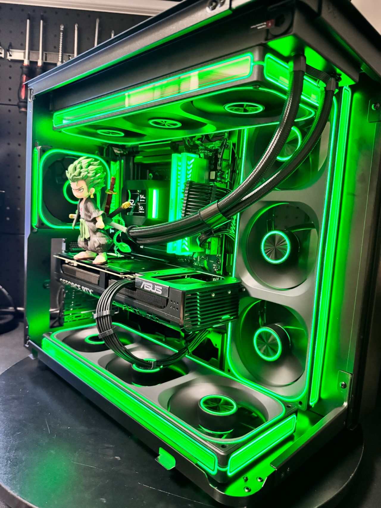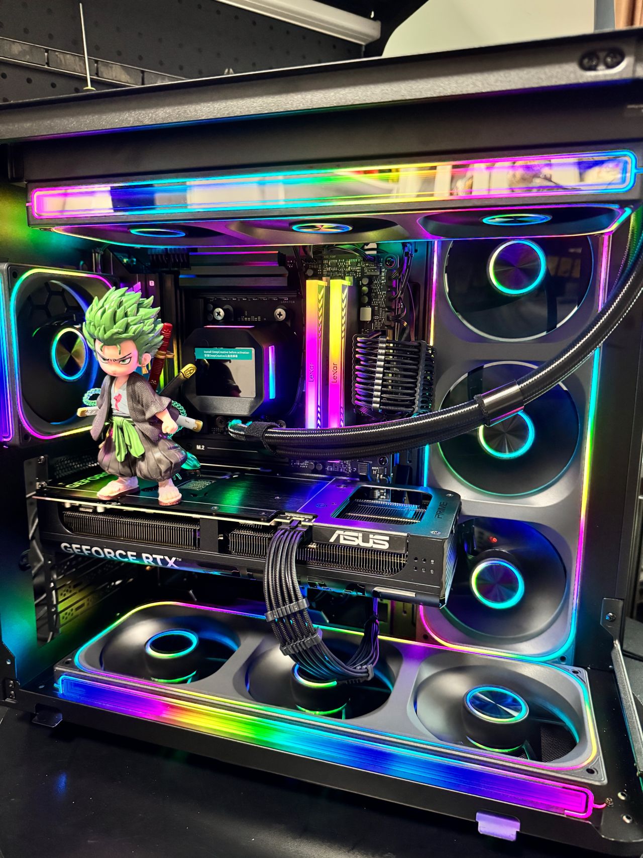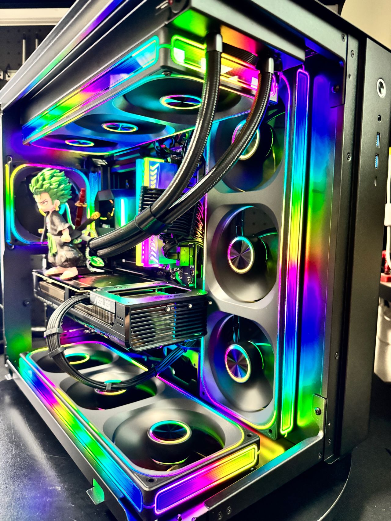这位盒友一个月前找到的我,咨询了一套配置,然后自己每天各种看各种研究,越看颜值越高,预算也越高。期间还为他做个一个机箱定制灯板,我一边教他省钱,他一边增加预算,从我推荐他的300块机箱,他一路增加到1500块的机箱。最后还是给他拦住了,选了这套中端颜值的机箱风扇套。