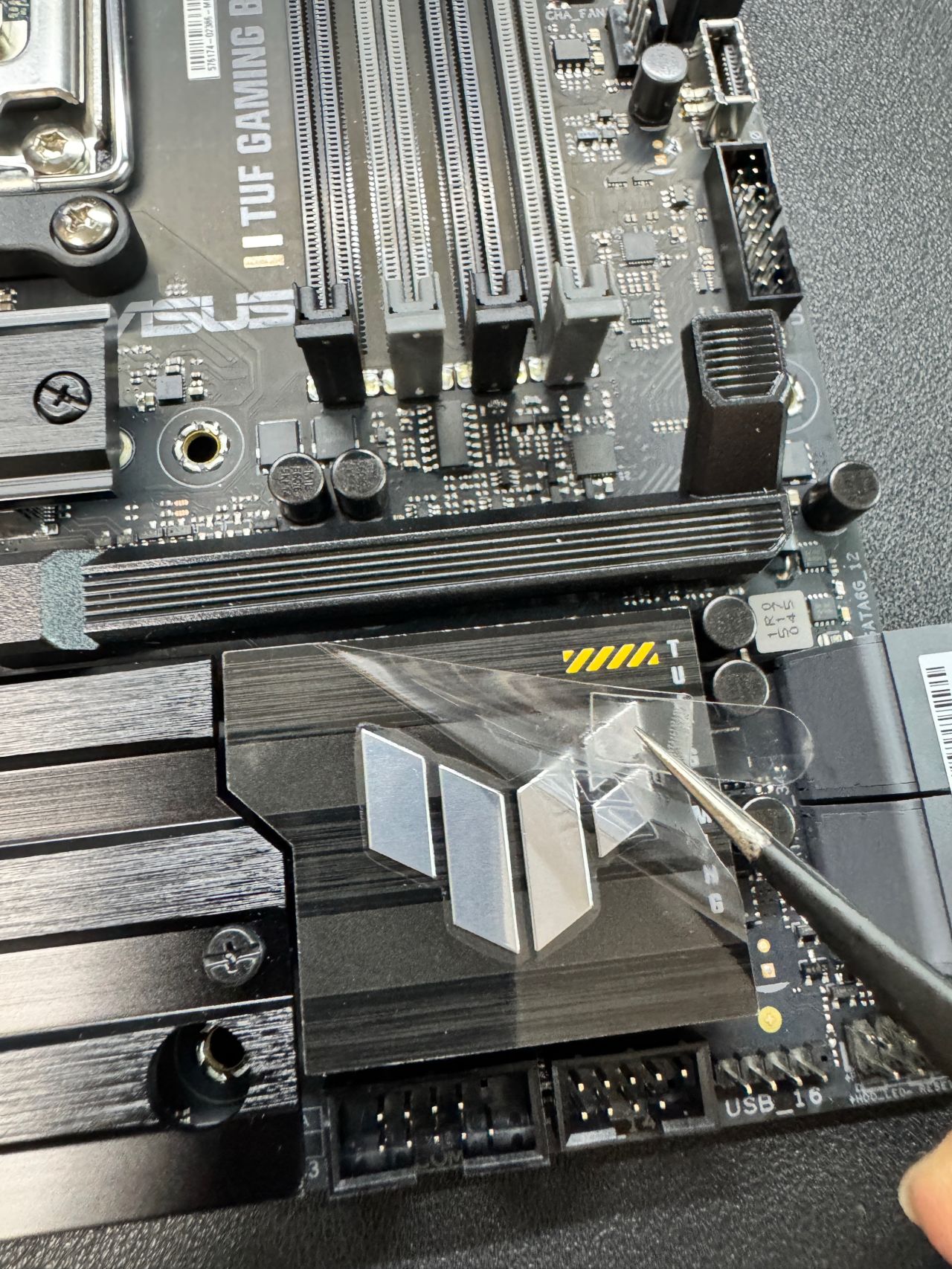 南桥散热装甲上的保护膜,IO面板上的保护膜。