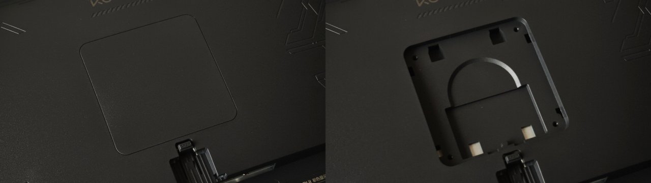 當然有的人可能還是不喜歡這種支架,畢竟可調節的範圍比較小,並且X5的這款支架只支持俯仰調節。如果你不喜歡,也可以選擇購買第三方的顯示器支架,安裝也很簡單,你可以發現在顯示器的背部似乎並沒有預留的孔位,其實只是隱藏了起來,把顯示器背部的這個正方形區域打開即可
