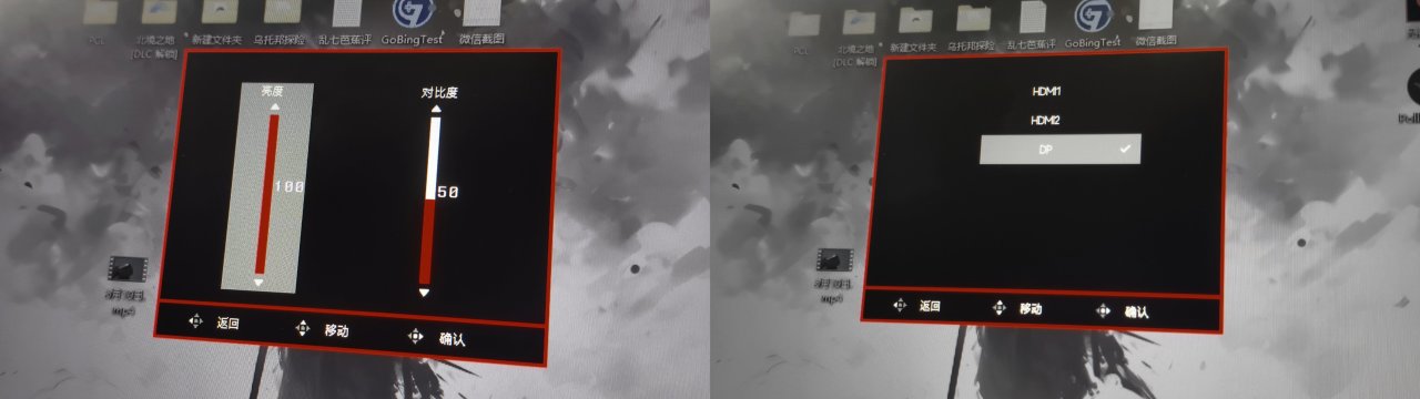 上方的圖標是選擇顯示器接口,右邊那個是用來調節顯示器亮度和對比度的。不過要注意一下,因爲X5這臺顯示器支持HDR的,因此如果你選擇開啓HDR,那麼亮度和對比度就無法調節了