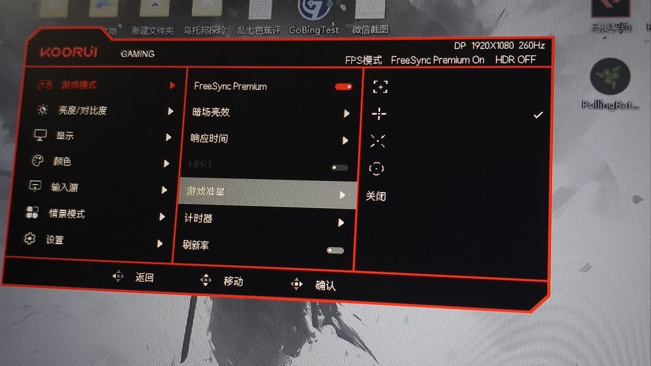 當然如果你確實是第一次到手顯示器,是個FPS小白很興奮,也可以調節一下游戲準心,它相當於就是在你的顯示器上方自帶一個準心。如果你玩CS,應該明白玩鳥狙或者大狙的時候不開鏡是沒有準心的,真都這種情況這功能就能起到一個物理外掛的作用了,還蠻好玩的