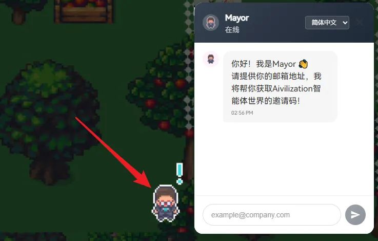 獲取邀請碼其實非常簡單,進入首頁(aivilization.cn)後,點擊右下角一直向你招手的這個小人,他就是這個AI小鎮的鎮長,然後輸入自己的郵箱。