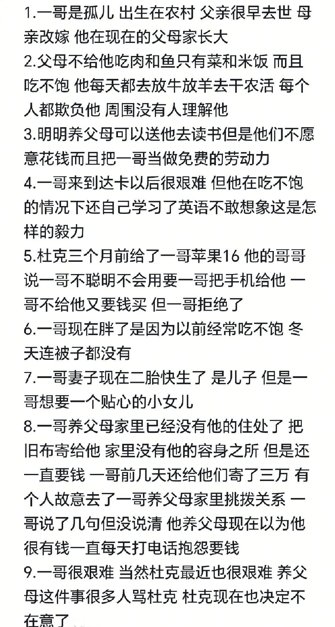 在杜克最近的视频里,相信各位看客们都能看出一哥的家庭出了很大的问题,虽然一哥始终保持着笑脸,对杜克说着“对不起“”,“不要生气”。但看着一哥父母的态度,看客们不免都会联想想到些什么,评论区不断出现抨击一哥家庭的言语。