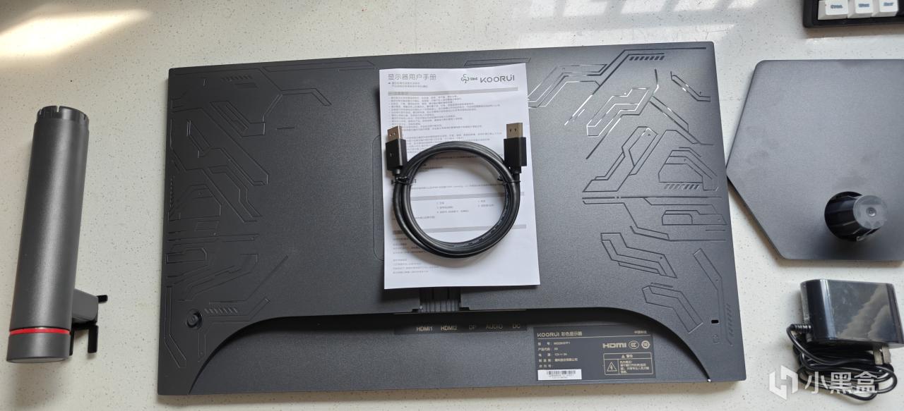 显示器对比其他外设没有那么复杂,所以配件也很简单。显示器本体、支架、底座、DP线、电源线、说明书×1。