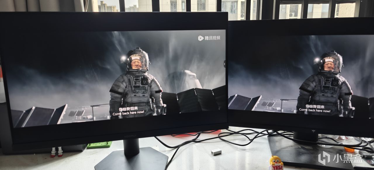 显示色彩方面,官方说具有专业级色彩表现。像我一样的普通用户家里自然是没有专业设备,所以干脆就直接拿不同显示器和手机屏幕进行对比最为简洁和干脆了。还是经典的控制变量法,不同显示器播放同一电影或者同一张照片。我自己看的话对比手机屏幕色彩和细节都是十分还原的,还不错。图二可以明显看出差别