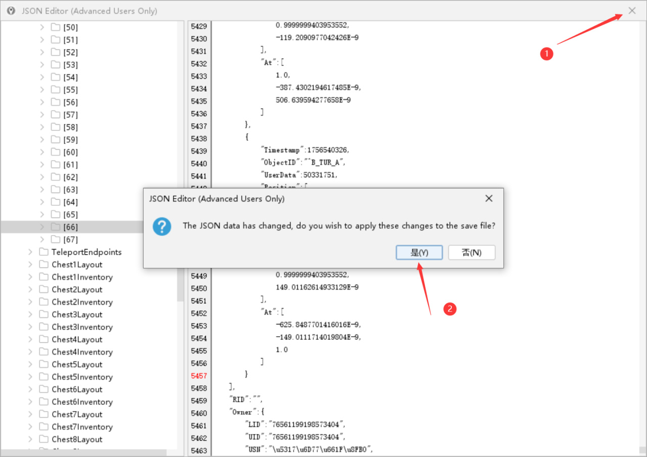 直接点右上角的叉号,存档修改器会自动提醒json有改动,是否要保存。
