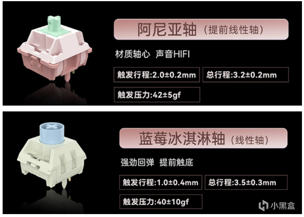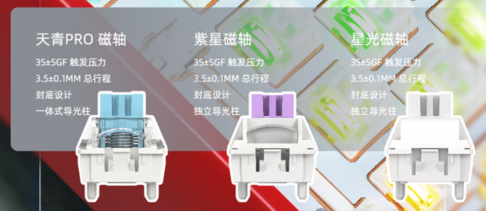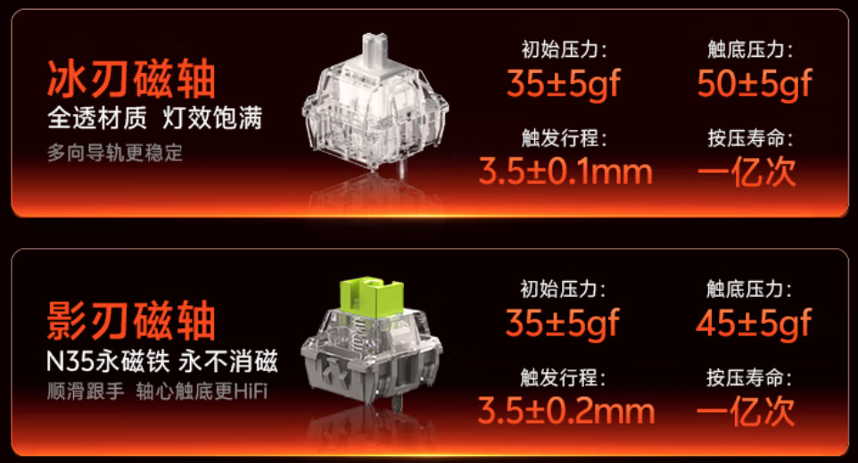轴体方面,使用ROG HFX磁轴。初始压力和触底压力会大一点,POM轴心+PC上盖