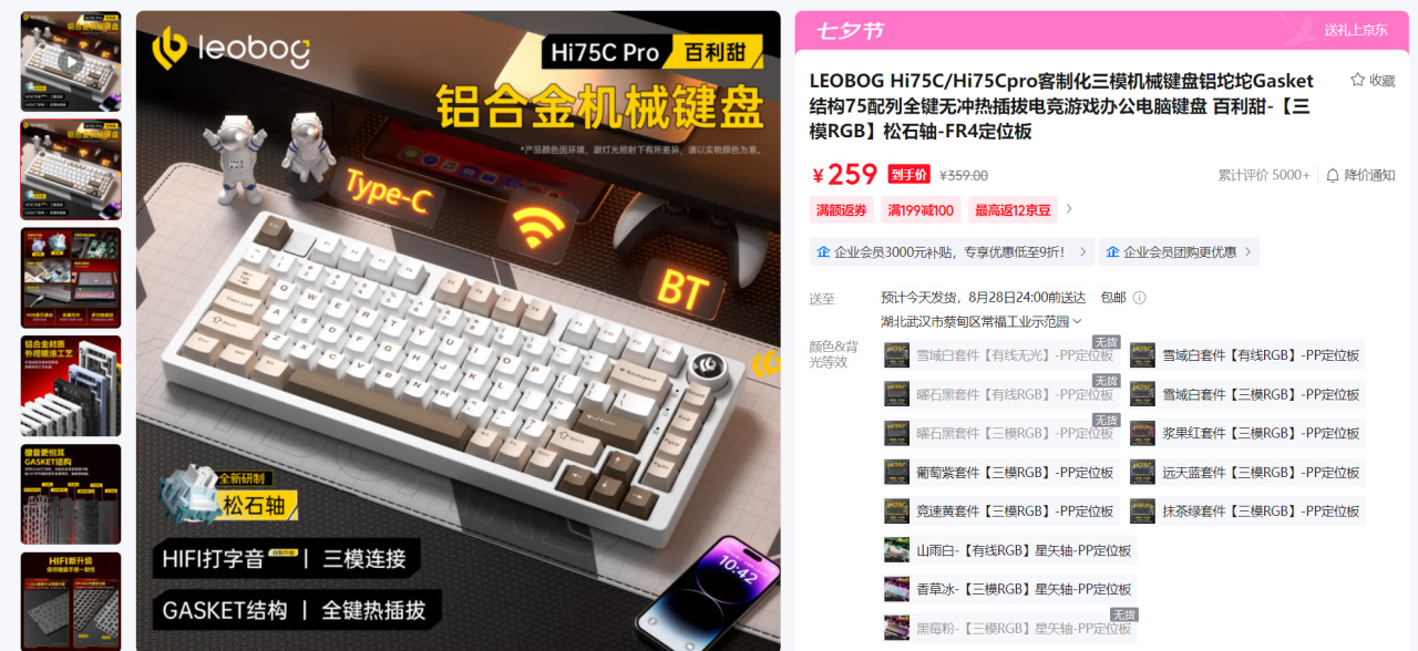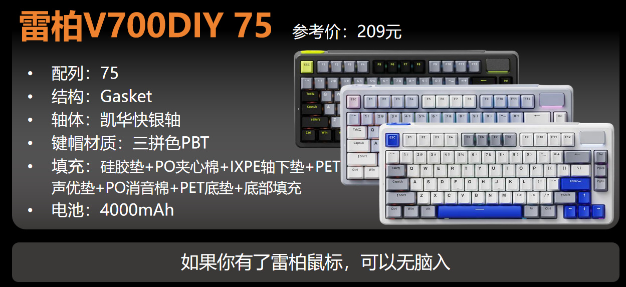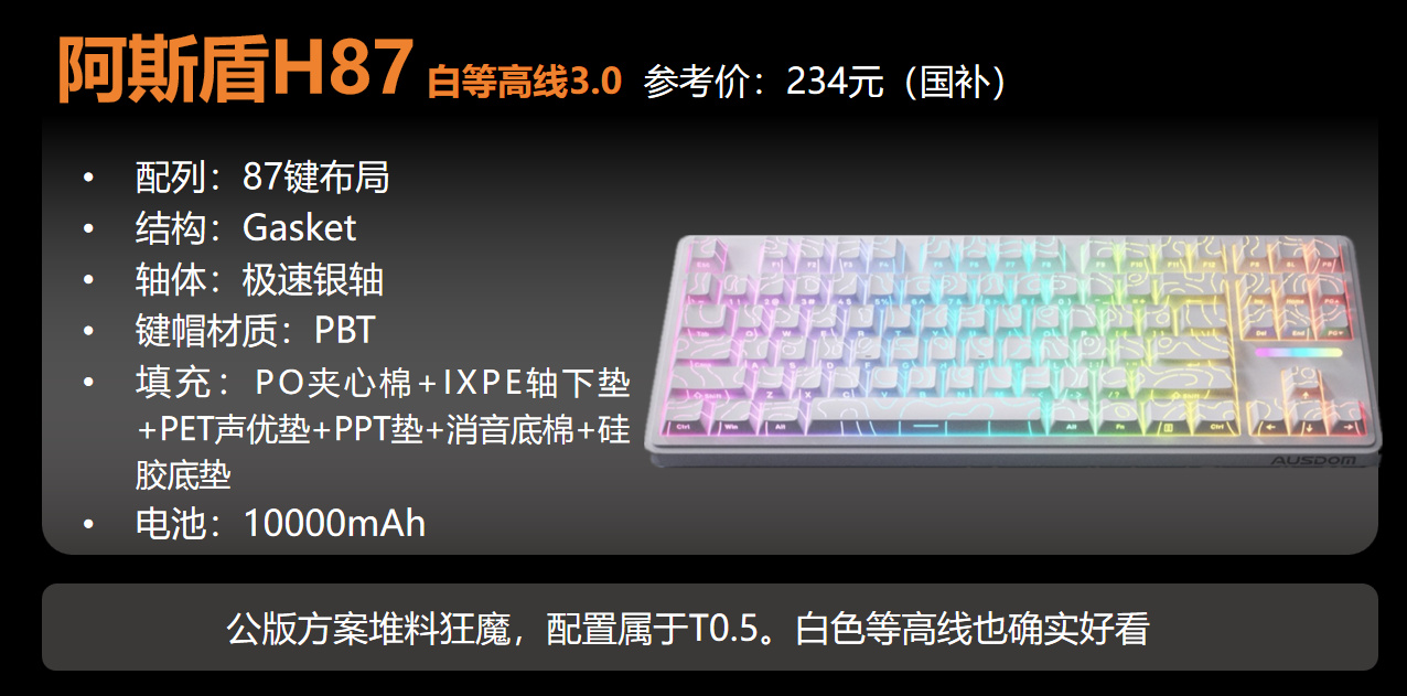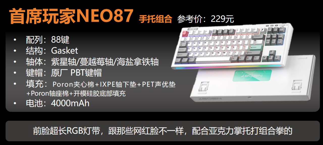 189元就能拿下10000mAh电池的版本,还是PBT键帽。