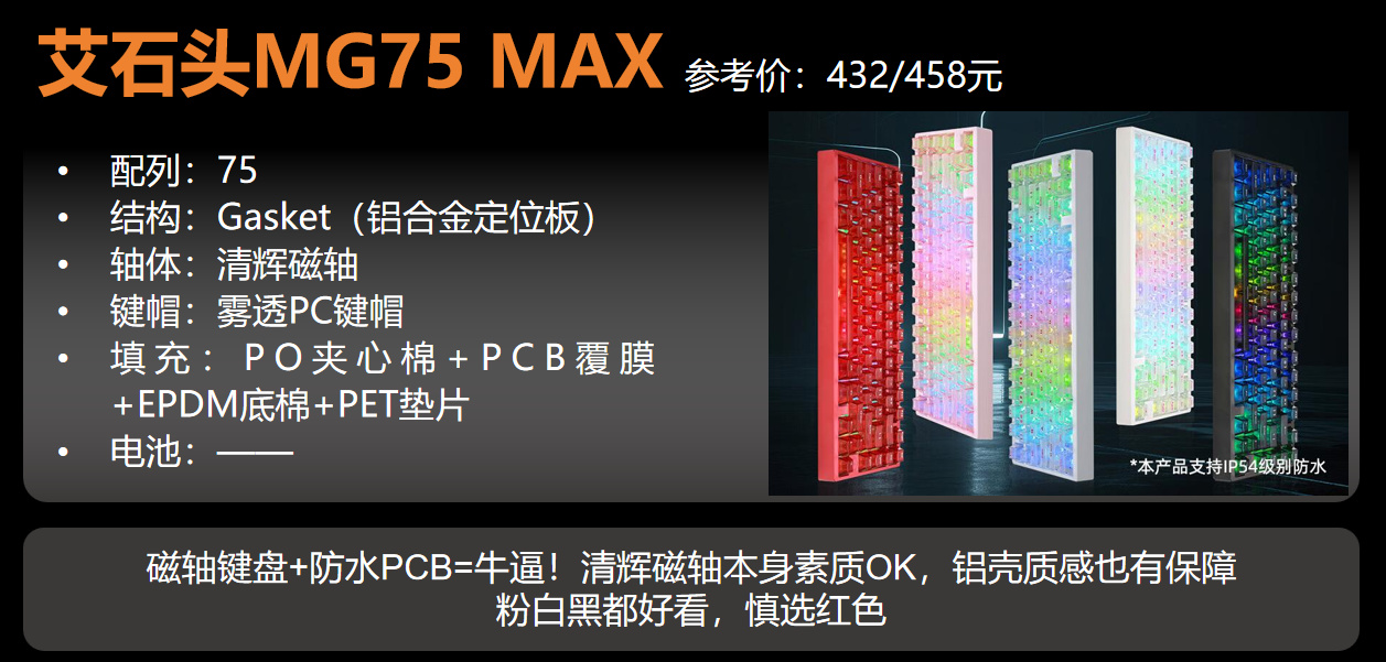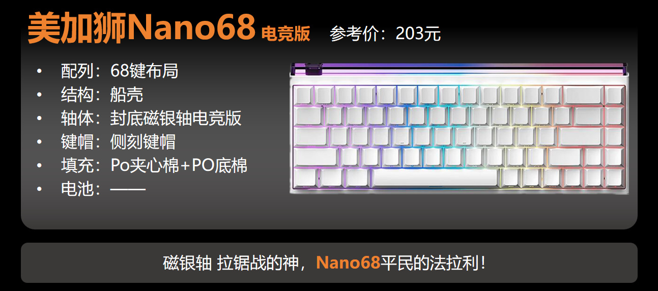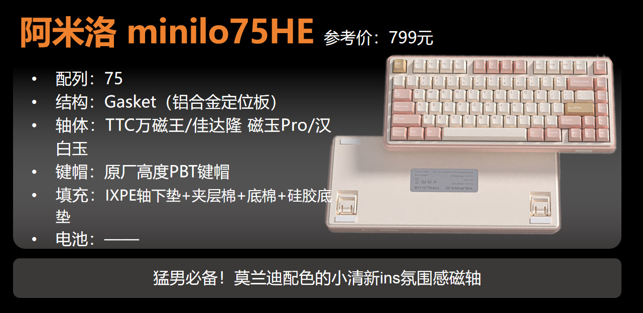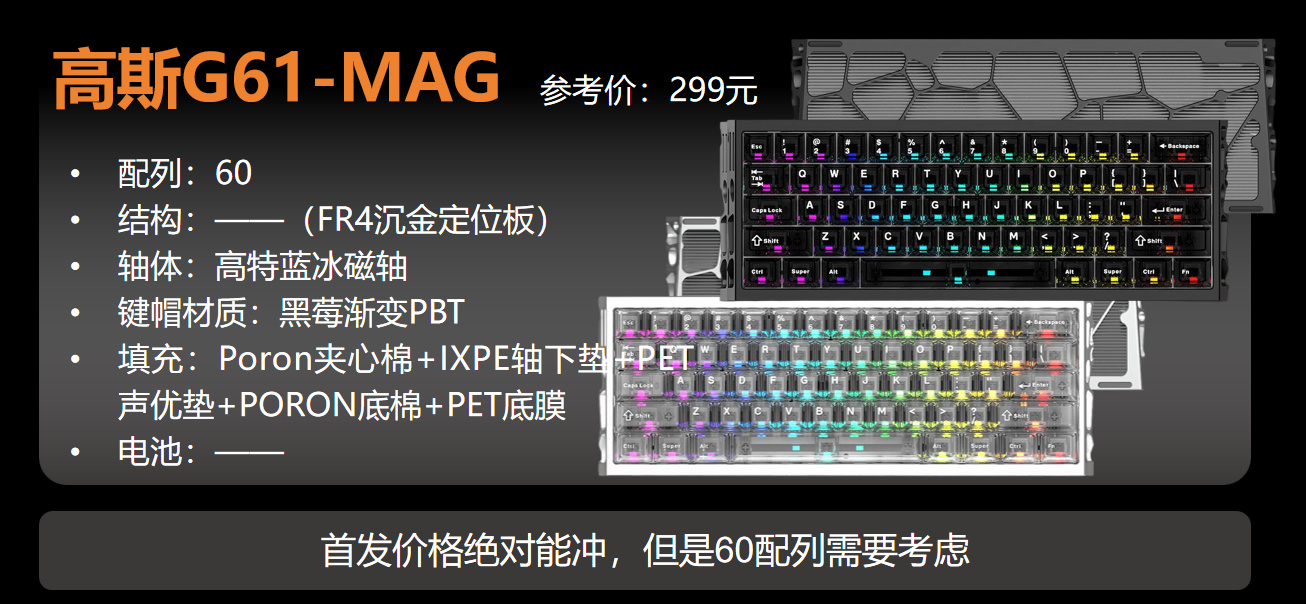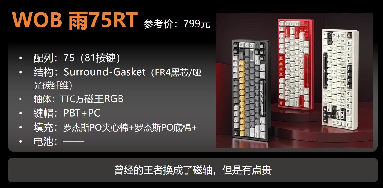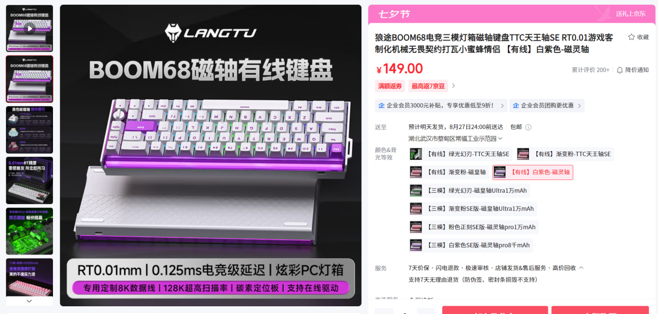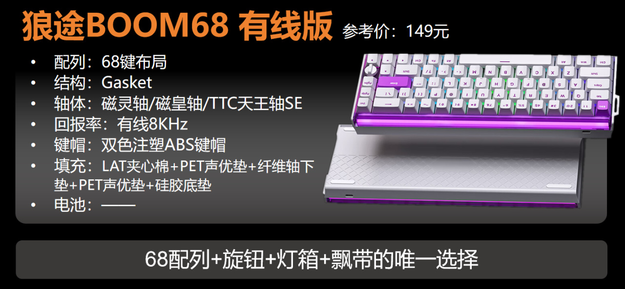 有线版本最低只要149元。还是白紫色键帽,并不廉价,再加上素质不错的磁灵轴,有防尘壁,有POM轴芯,有PC上盖,无非就是导光柱可能没那么好。