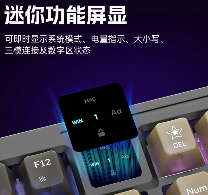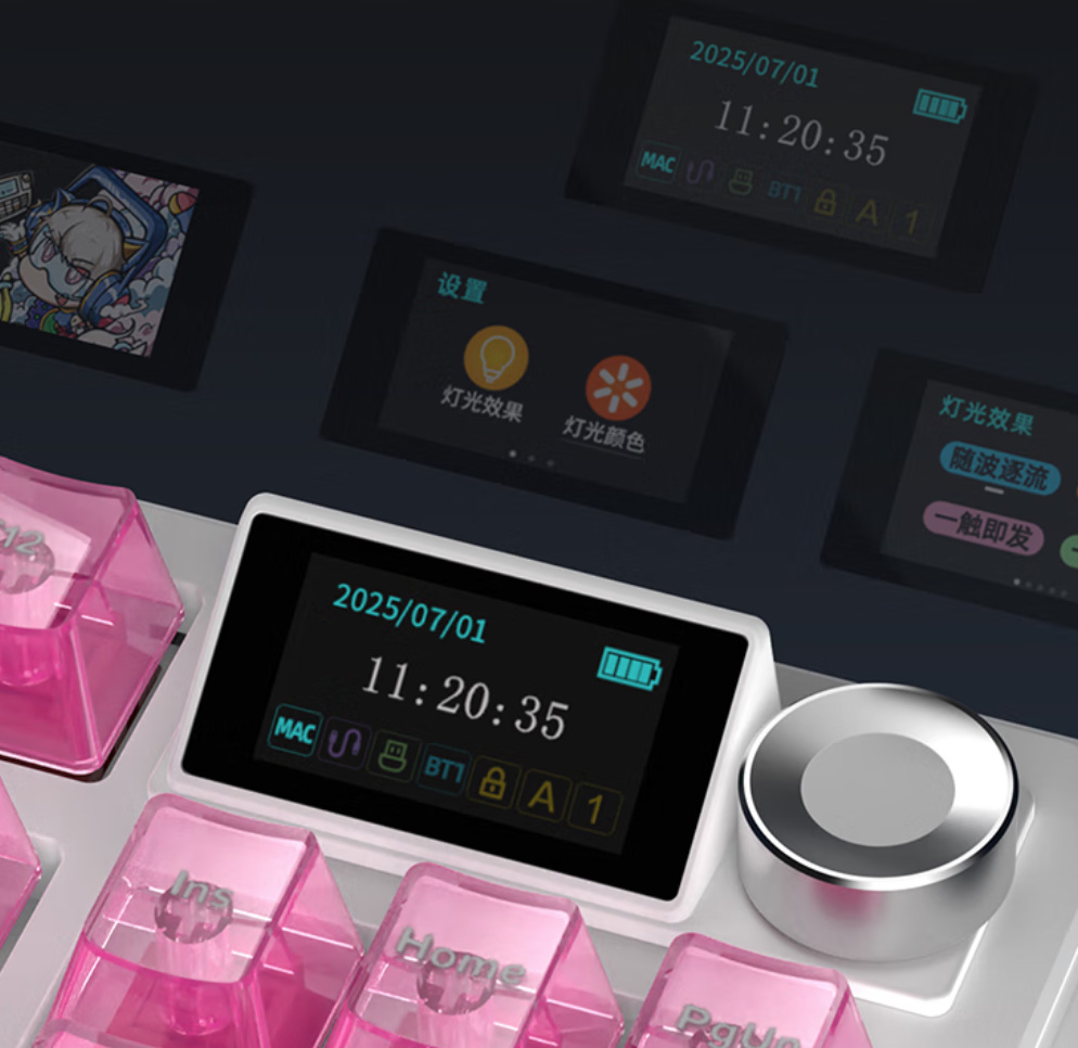 这个旗舰最大的特色就是无线4KHz回报率和OLED屏幕,屏幕支持查询PC指标、键盘状态、自定义动画和可视