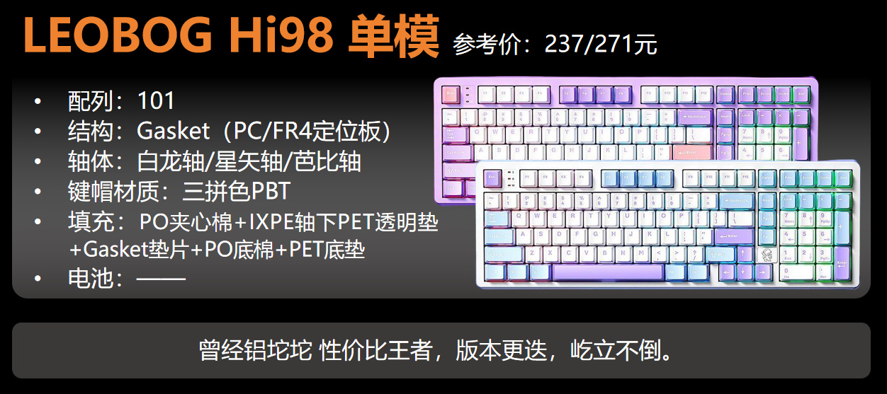 凌豹做了98配列,出手就是爆品!凌豹K98就是这么个存在。