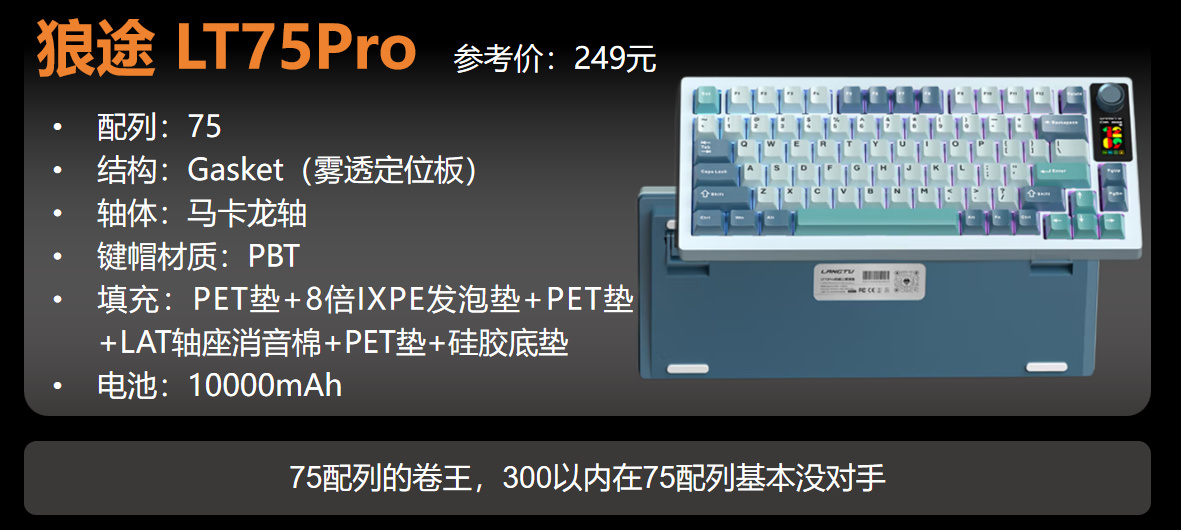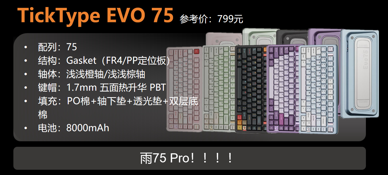 我愿称之为“雨75 Pro”,之前雨75确实是键圈一霸,但是随着时代的变化和友商的围攻,雨75的时代落下帷幕,然后就是这个“雨75 Pro”的EVO 75。懂不懂含金量?!