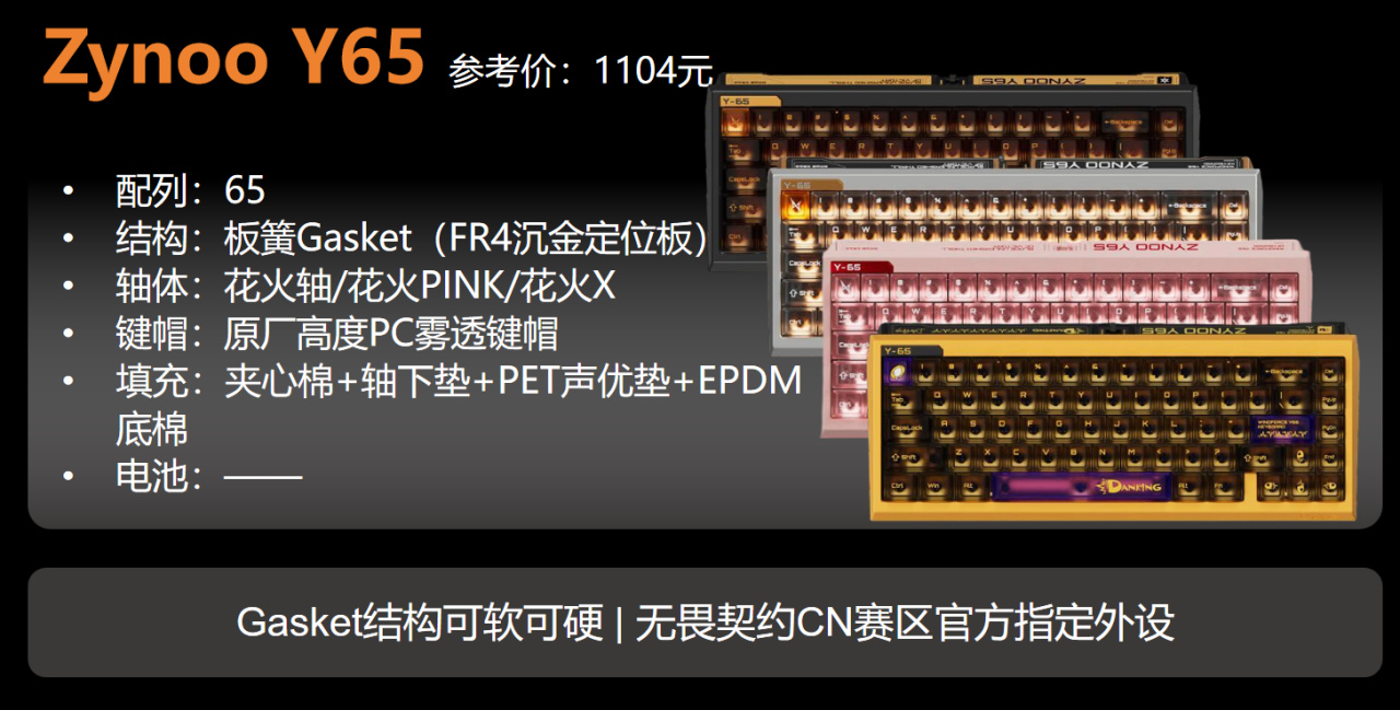 Zynoo Y65,之前就讲过1000块钱你拉女神的手都拉不到一次,但是买一把键盘可以让你爽好几年。
